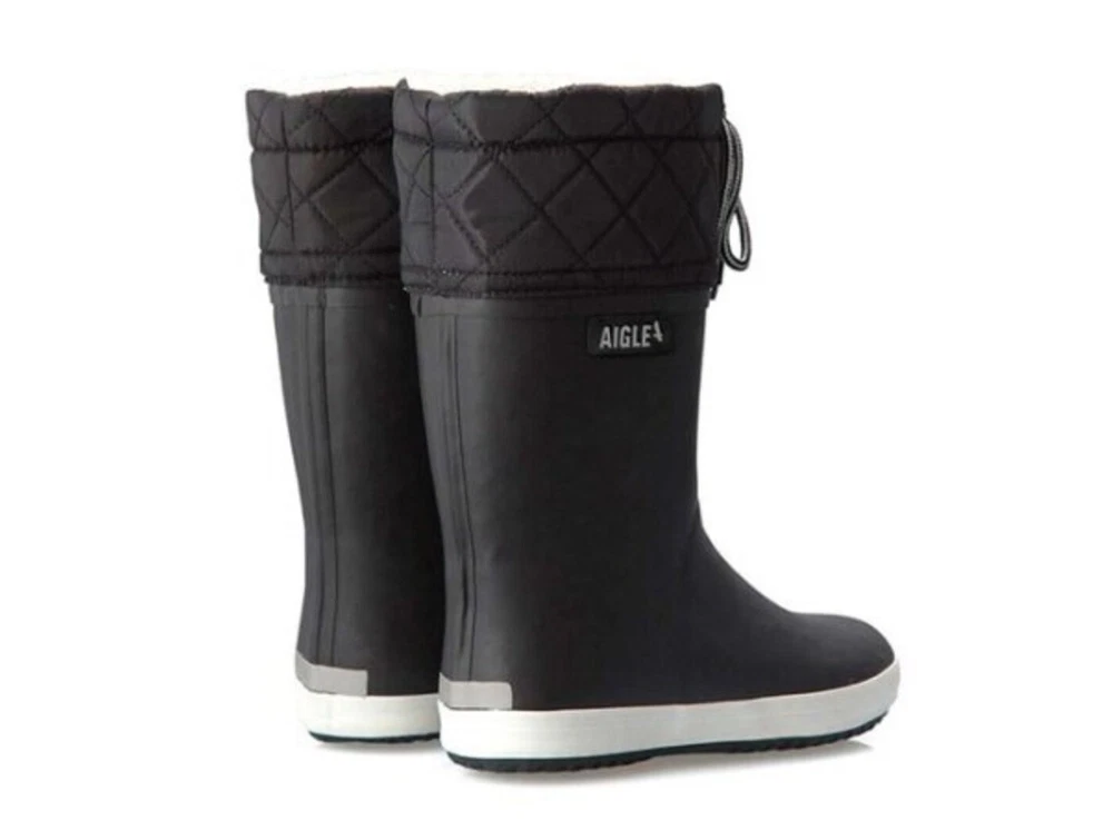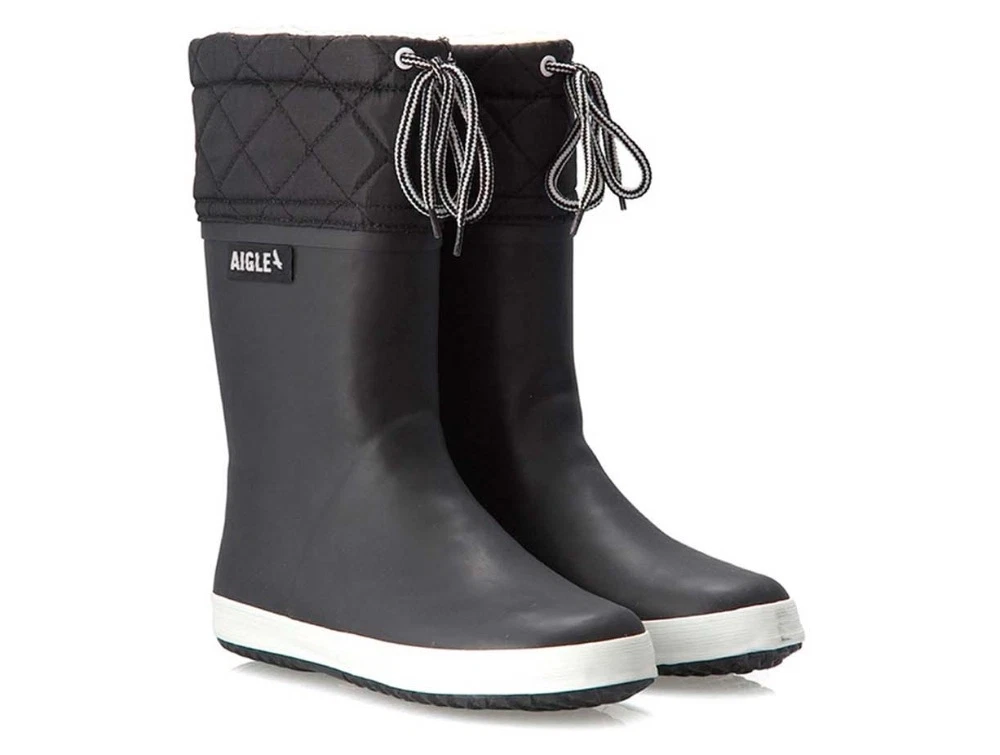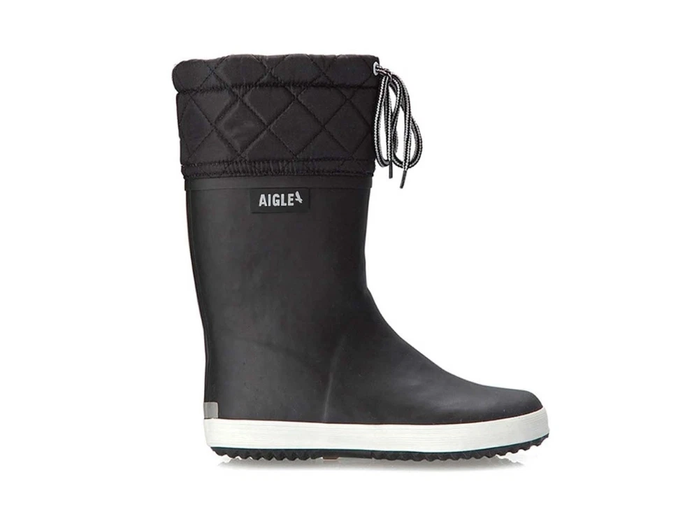 Vintergummistøvle i sort (noir blanc) fra Aigle med varmt 100% polyester foer. Skaftet har quiltet overdel med snøre. Støvlen er oplagt som supplement til almindelige vinterstøvler.
