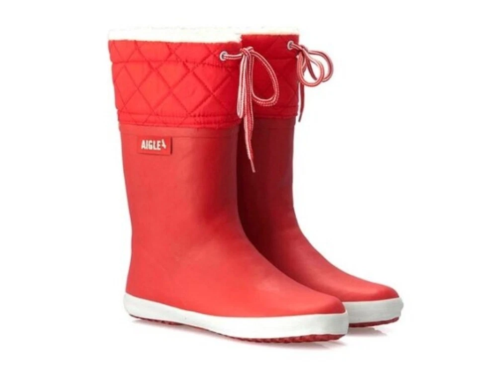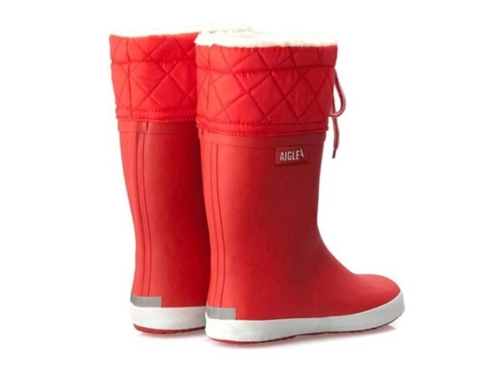 Vintergummistøvle i rød (rouge blanc) fra Aigle med varmt 100% polyester foer. Skaftet har quiltet overdel med snøre. Støvlen er oplagt som supplement til almindelige vinterstøvler.