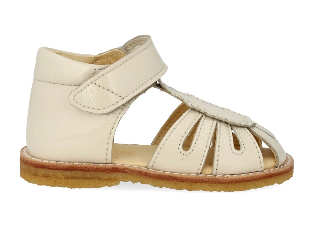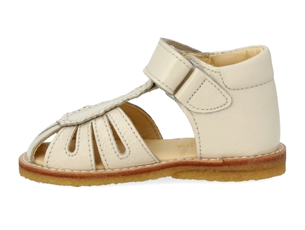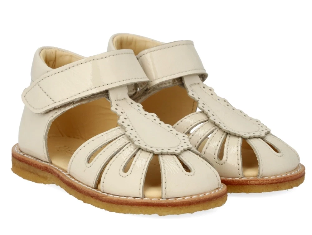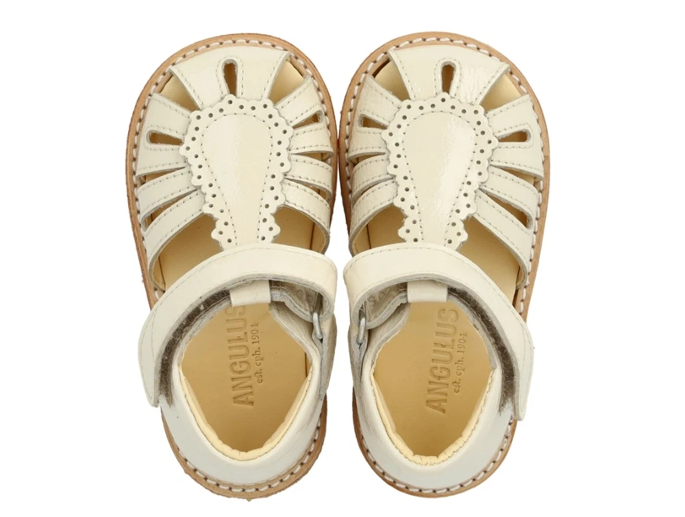 Angulus sandal buttermilk med velcro og broderi anglaise