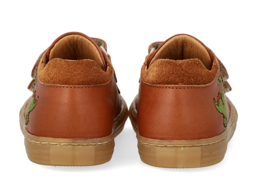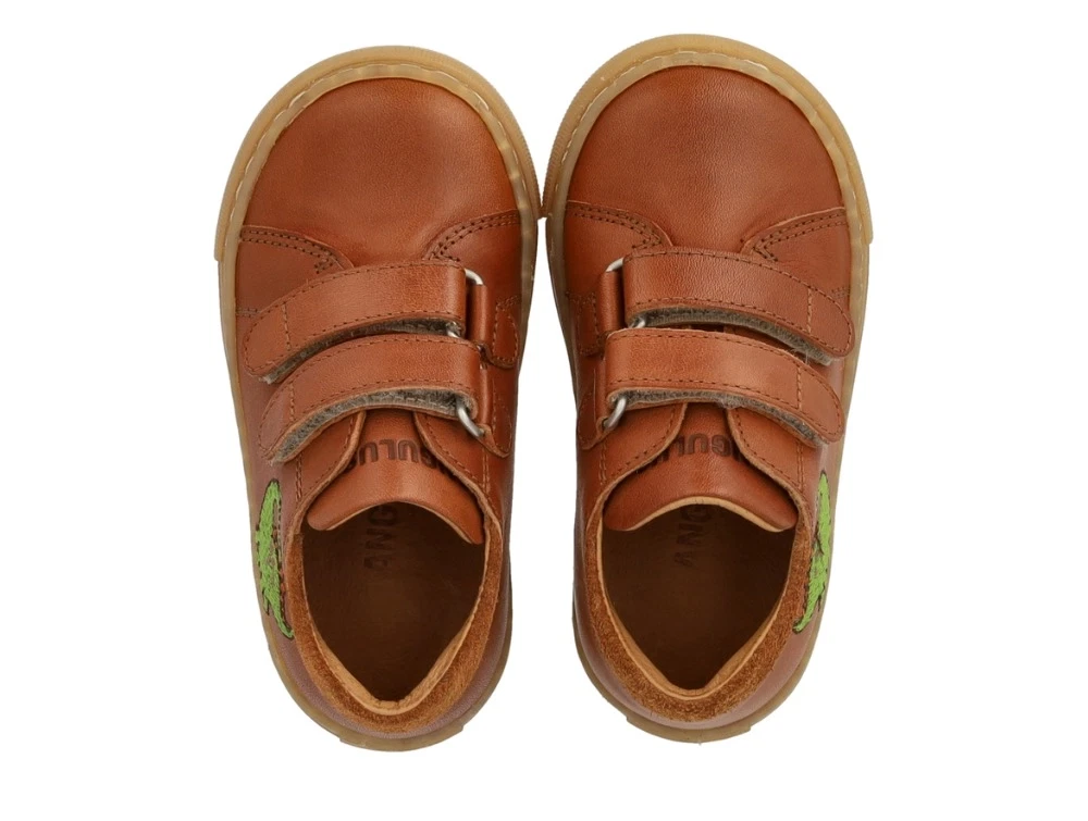 Angulus begynder sneaker i cognac med dinobroderi og velcrolukning
