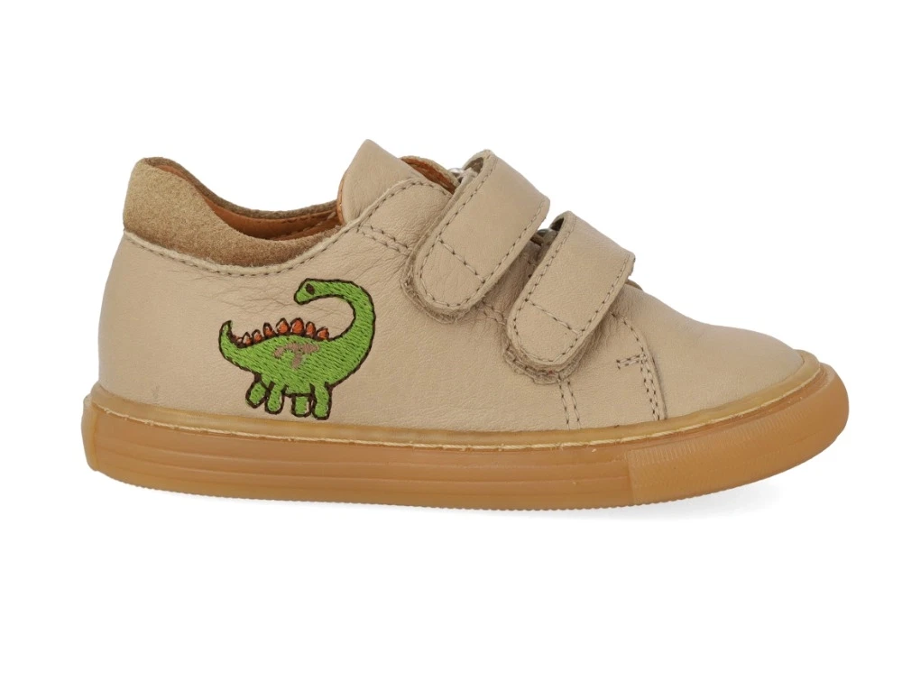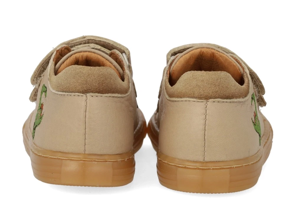 Angulus begynder sneaker i beige/sand med dinobroderi og velcrolukning