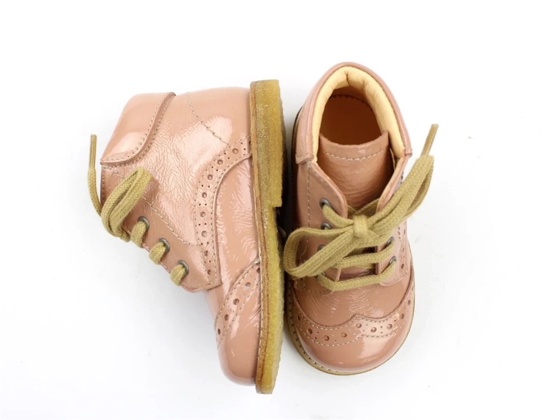 Mere information om Angulus begyndersko mørk peach lak med snørebånd