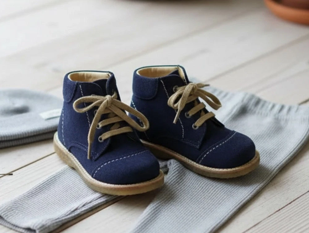 Navyfarvede begyndersko i ruskind fra Angulus.