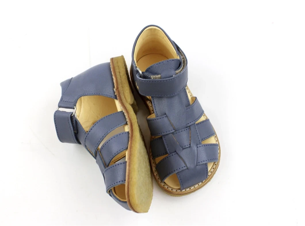 Sandalen har en lukket snude og en fast høj hælkappe med god støtte.