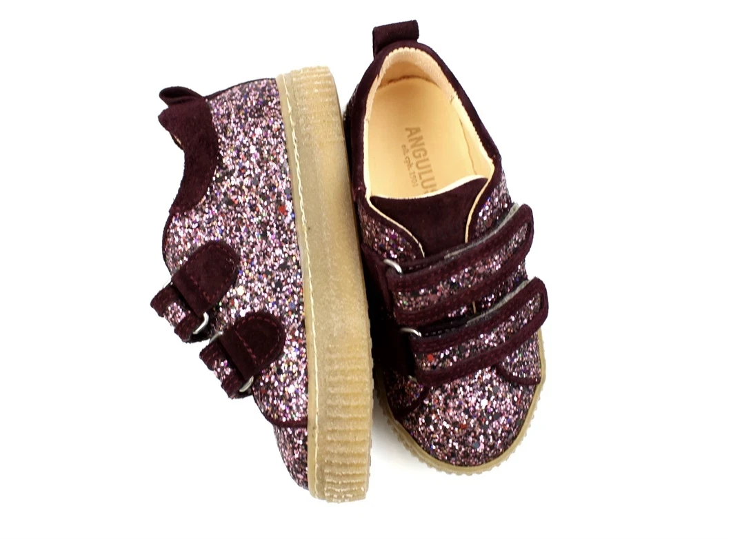 Tilføj et strejf af magi og farve til dit barns skosamling med disse sko med bordeauxfarvet glimmer fra Angulus.