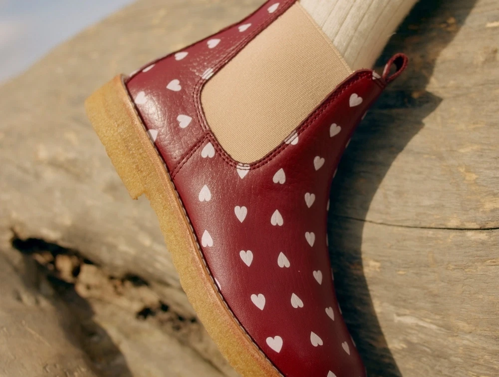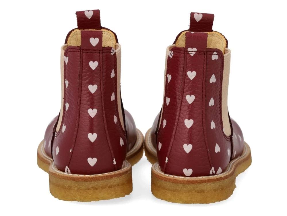 Angulus Chelsea støvle rød bær med hjerter og rågummisål