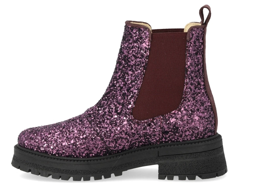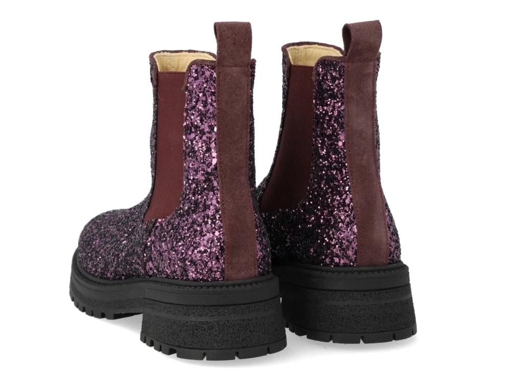 Angulus Chelsea støvle aubergine glitter med chunky tracksål