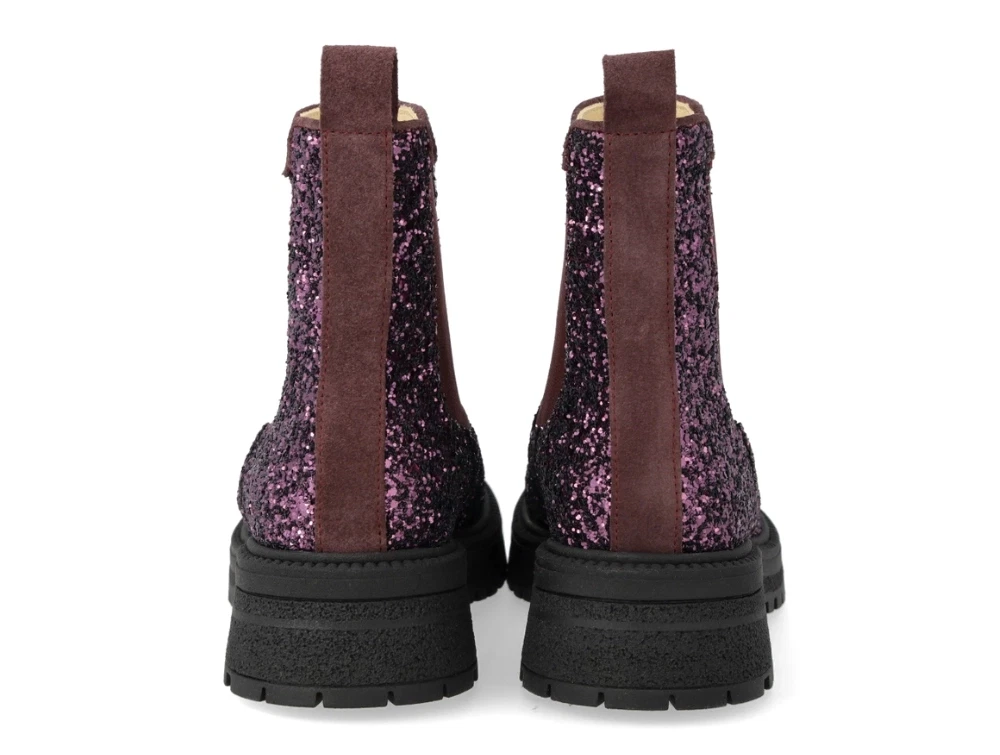 Angulus støvletter i aubergine glitter med chunky tracksål