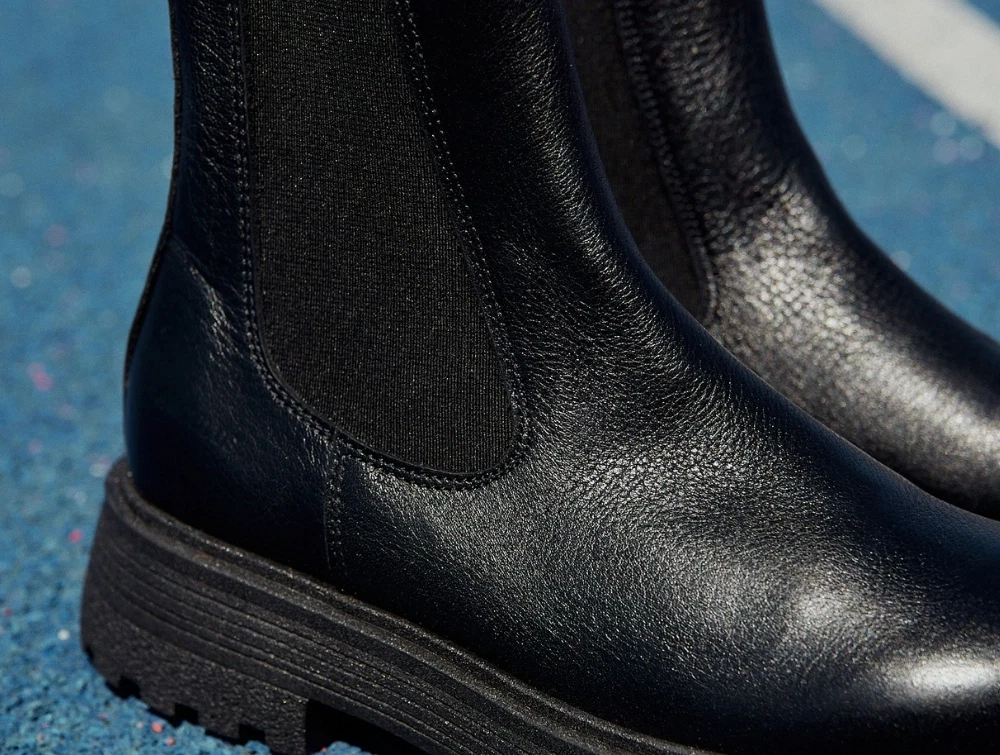 Angulus Chelsea støvle sort skind med chunky tracksål