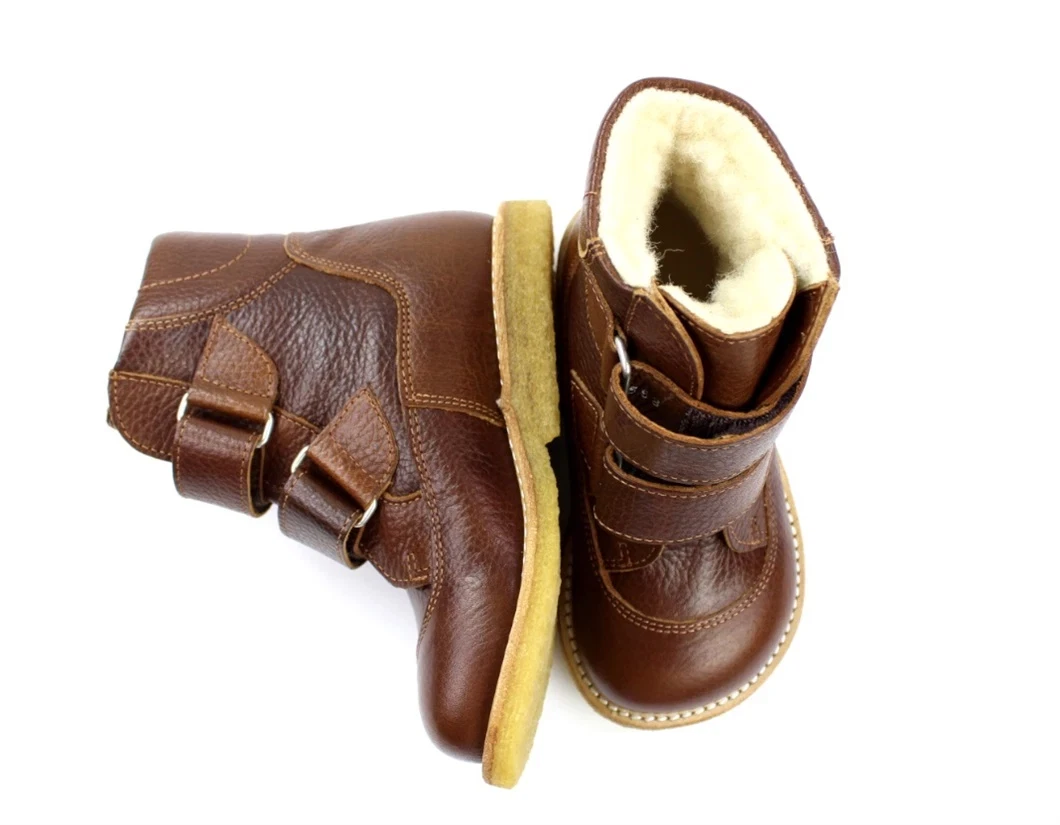 Klassiske cognacfarvede lædervinterstøvler fra Angulus. Støvlen har uldfoer og tex og lukkes nemt med to velcroremme.