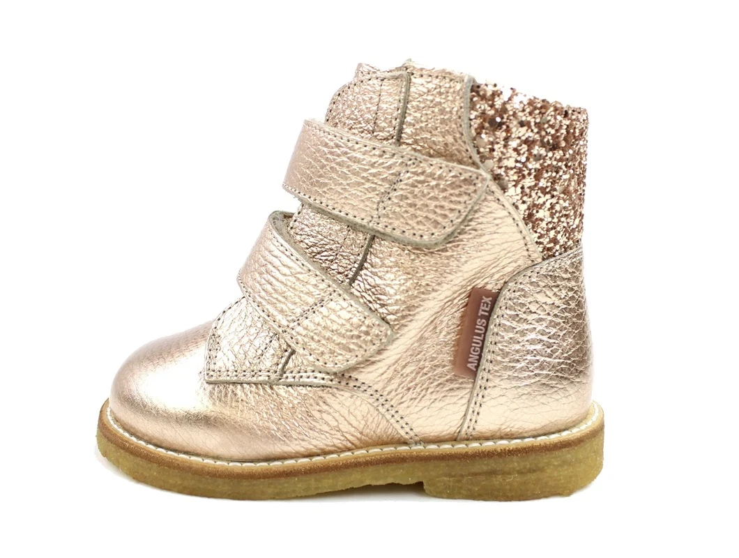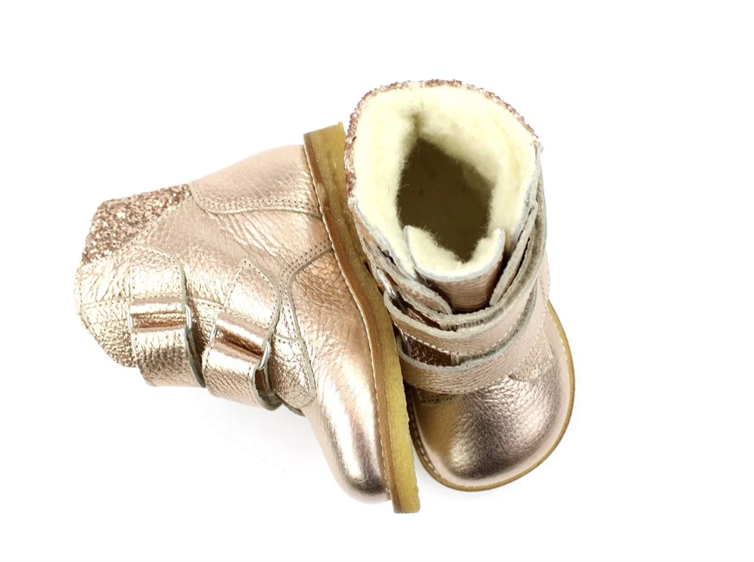 Lædervinterstøvle i farven copper med glitter fra Angulus.