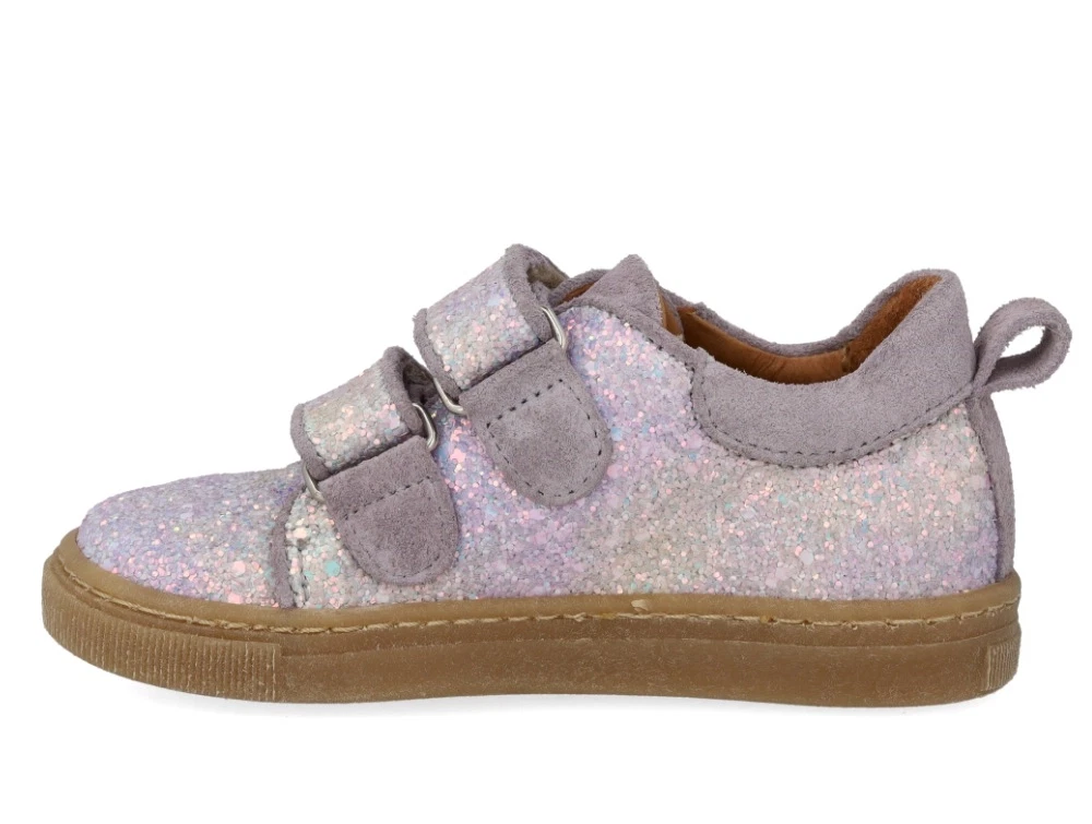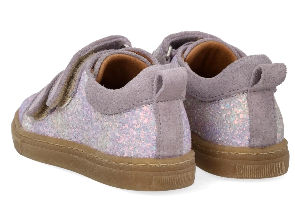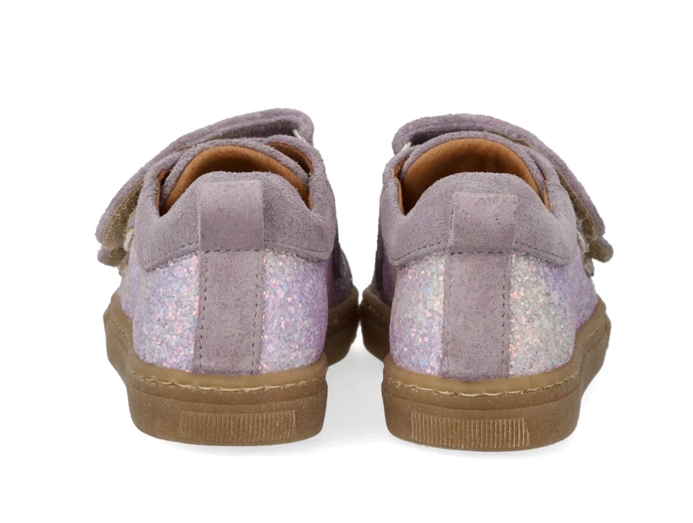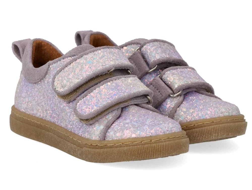 Angulus glitter sneaker i lilla glitter med velcro, ruskindskanter og fast hælkappe