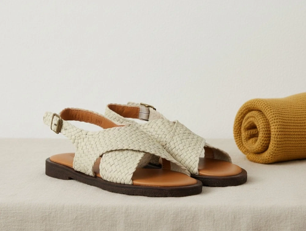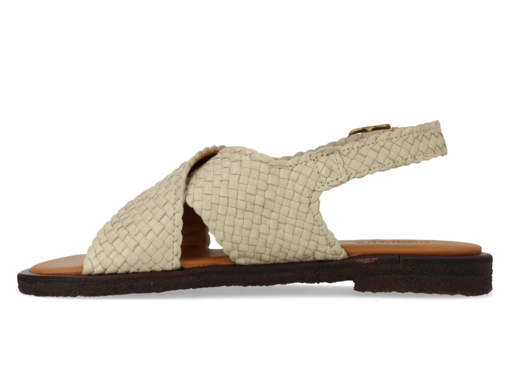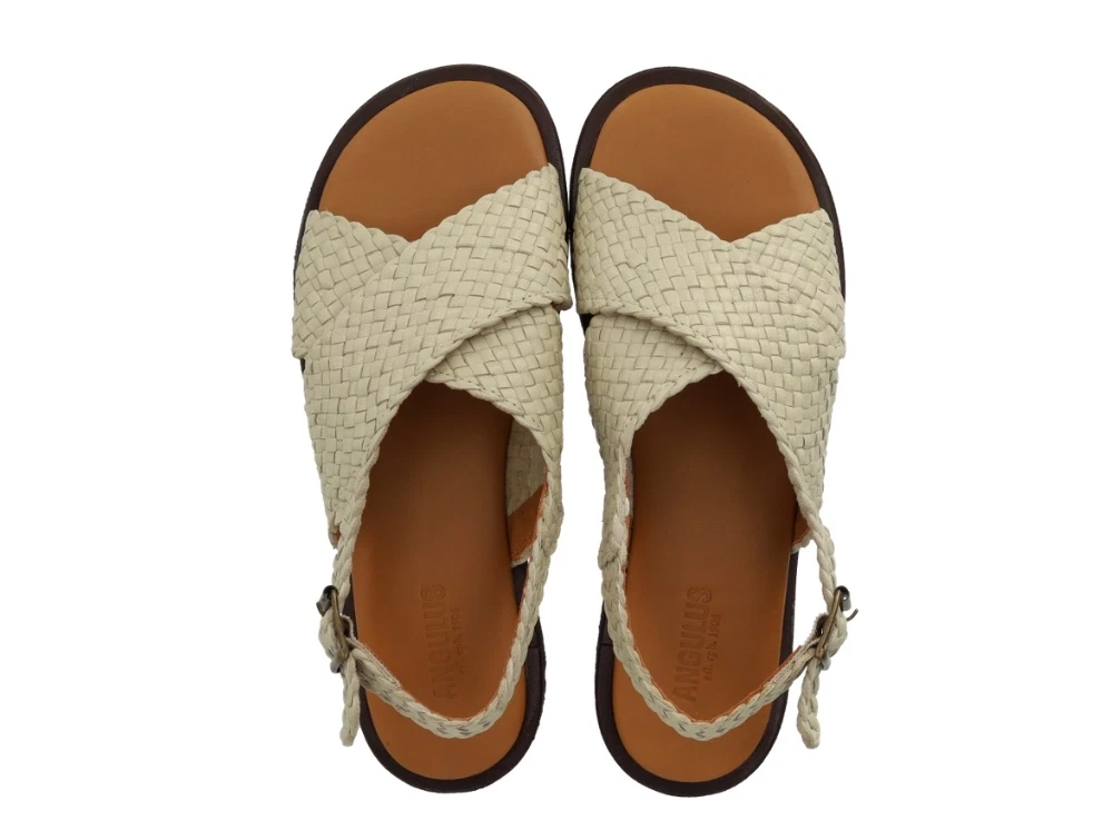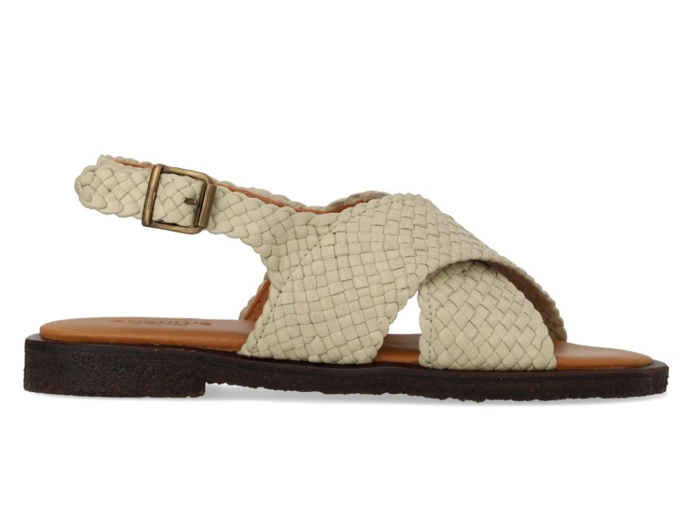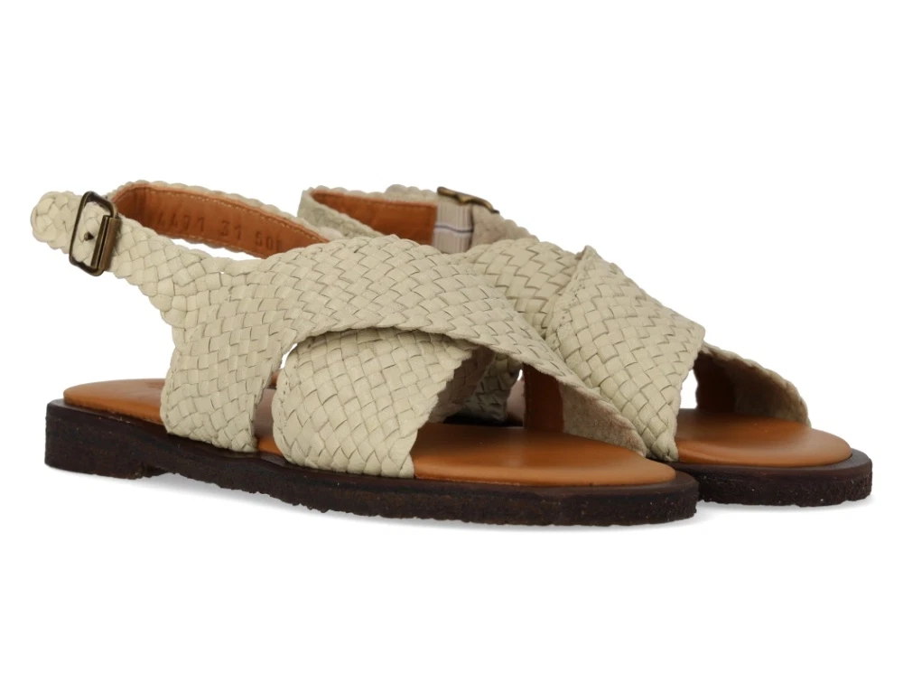 Angulus håndflettet krydssandal i beige læder med spænde og åben tå