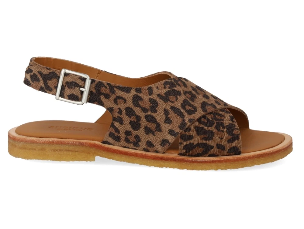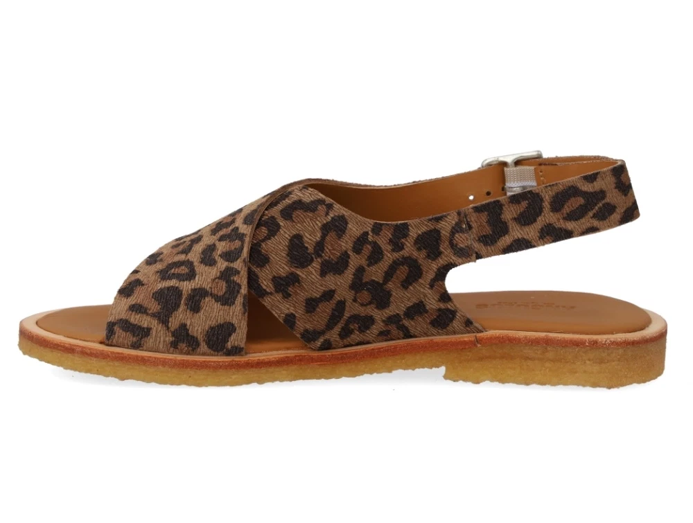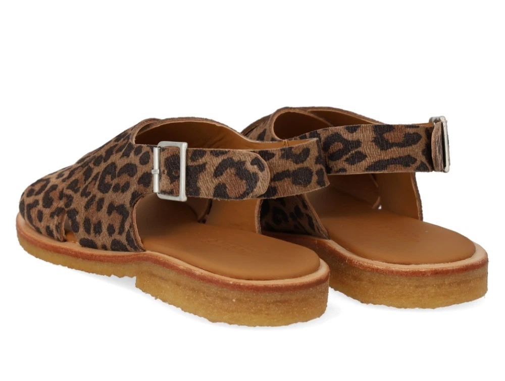 Angulus krydssandal i leopard læder med spænde og åben tå