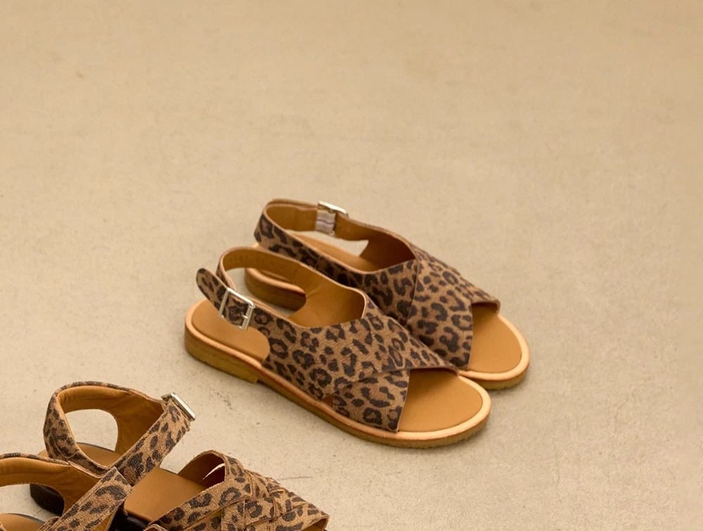 Angulus krydssandal leopard med spænde og åben tå