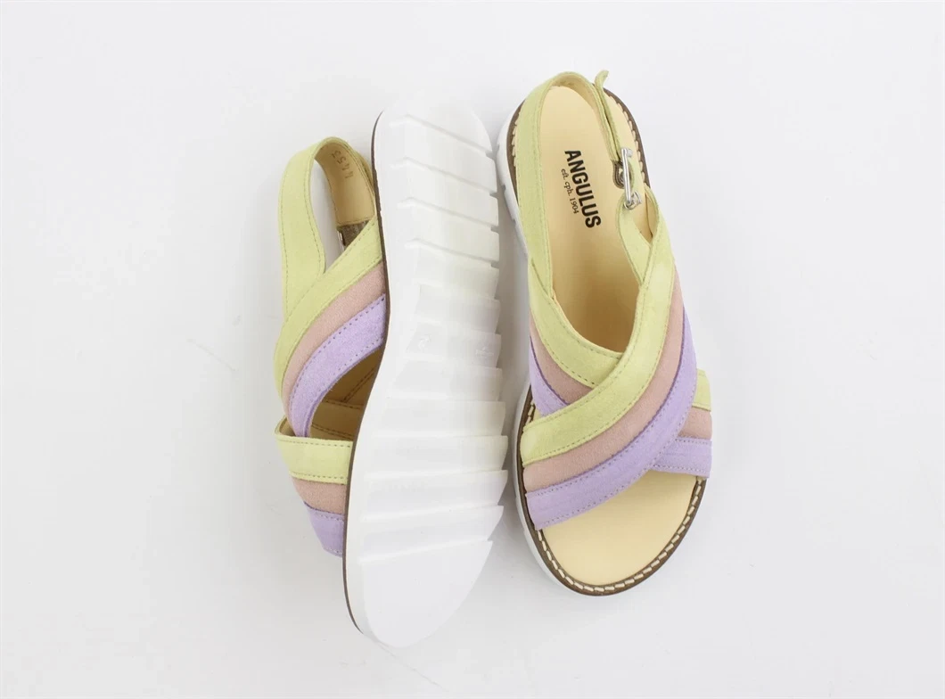 Mere information om Angulus lilac/peach/light gul sandal med spænde