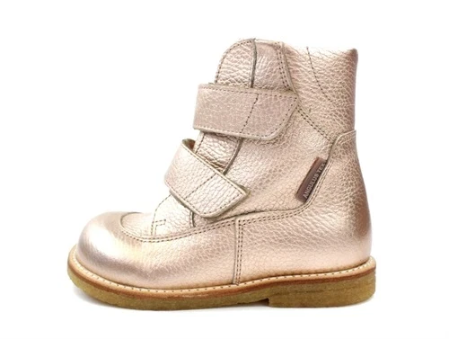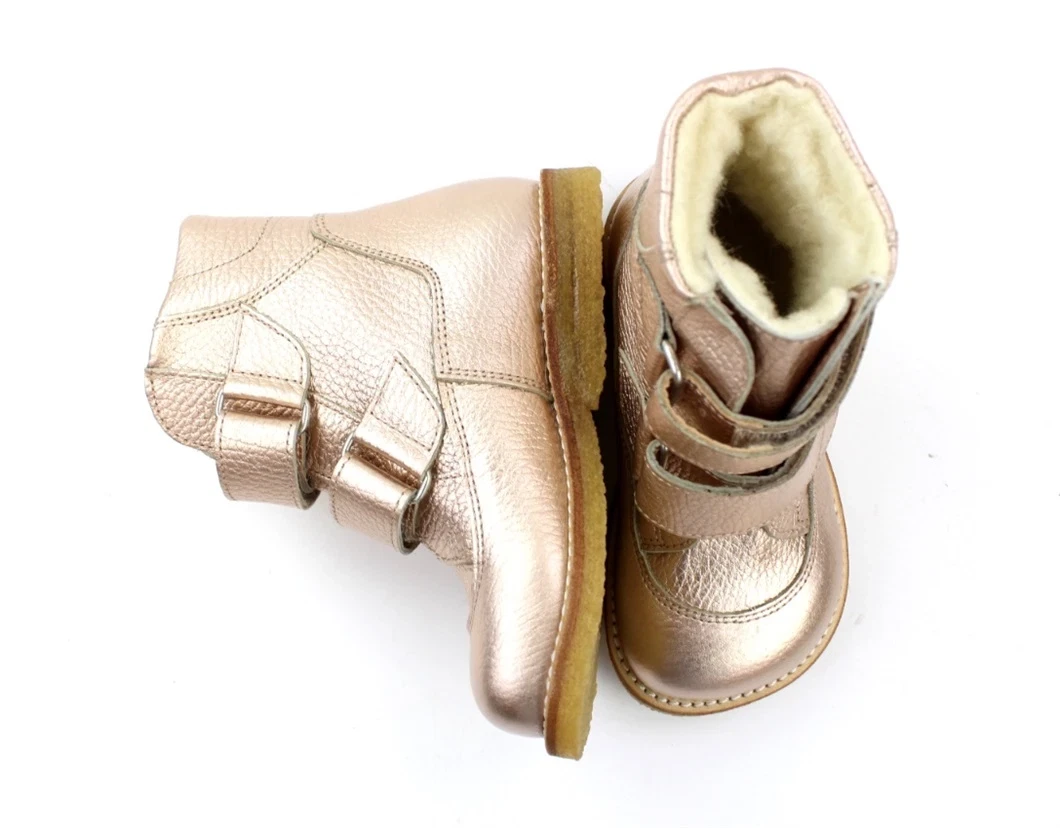 Klassiske lædervinterstøvler i farven light copper fra Angulus. Støvlen har uldfoer og tex og lukkes nemt med to velcroremme.