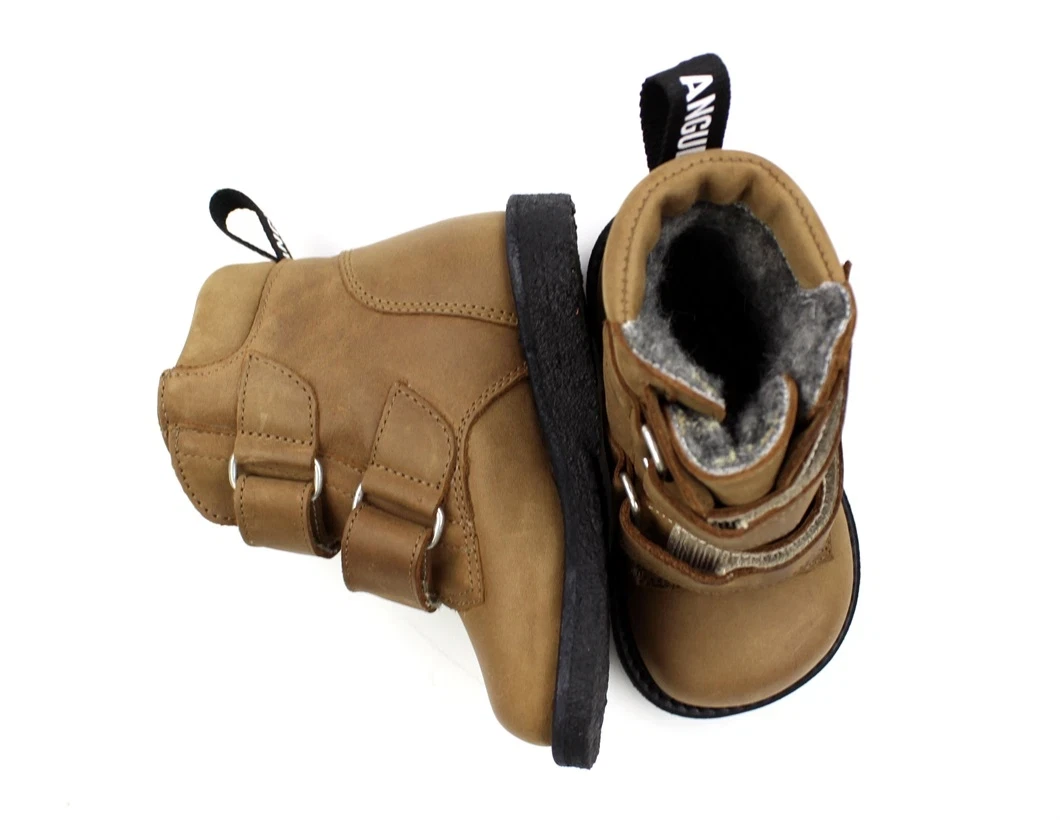 Cognacfarvet vinterstøvle i nubuk fra Angulus.
