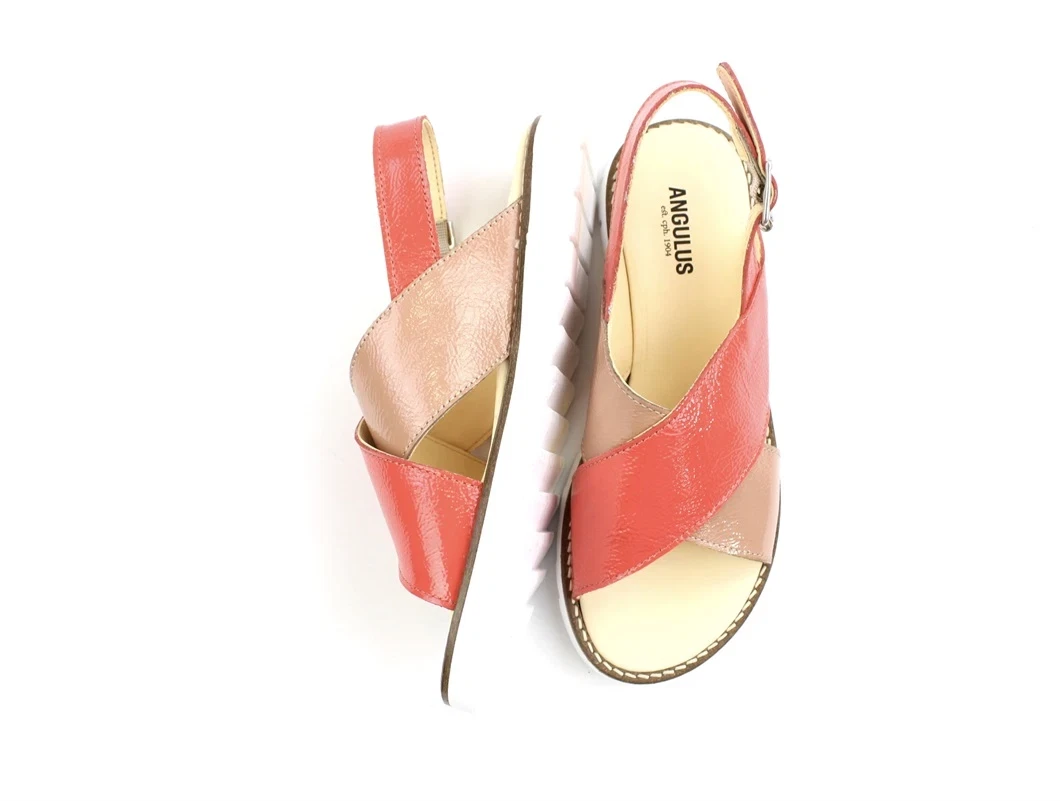 Sandal i læder med lak i farven dark peach og coral fra Angulus.