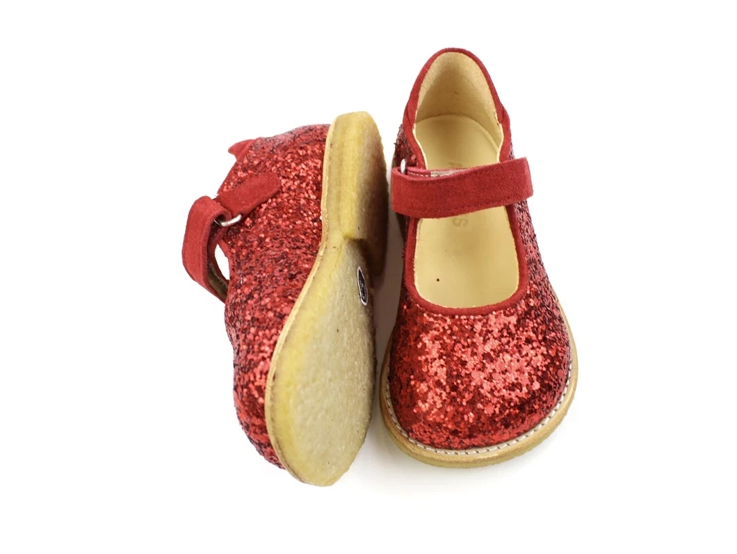 Det røde glimmer giver en fortryllende effekt til disse Mary Jane-sko fra Angulus.