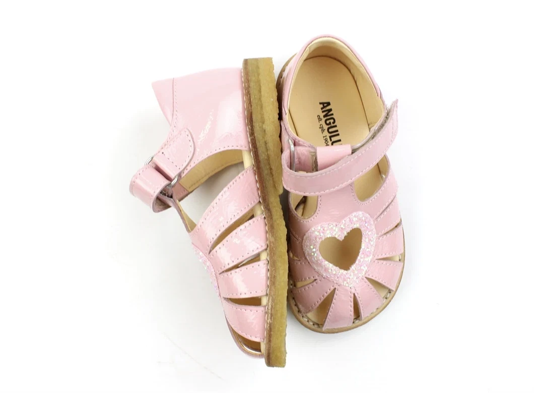 Angulus rosa sandal med hjerte, glitter og lakAngulus rosa sandal med hjerte, glitter og lak
