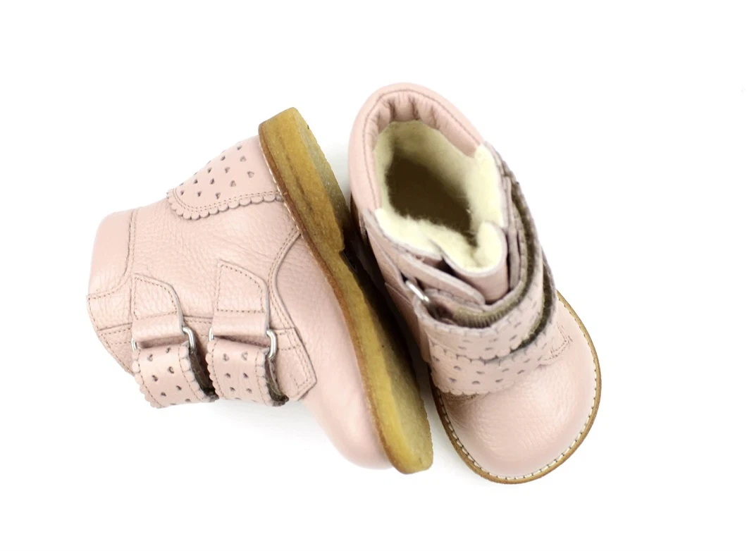 Lædervinterstøvle i farven rosebud fra Angulus.