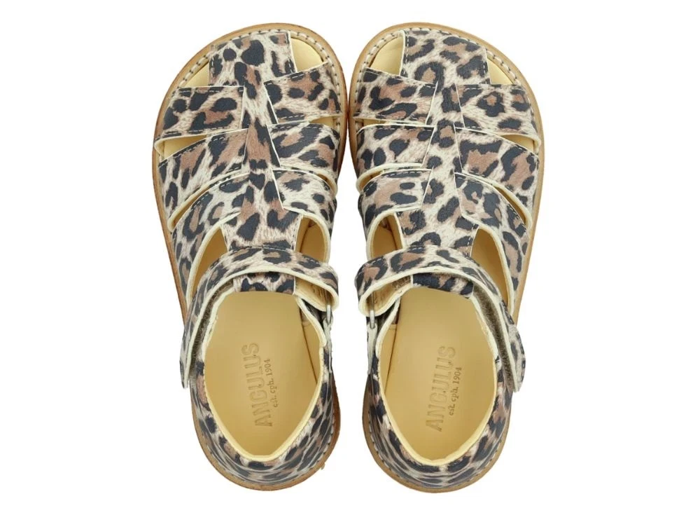 Angulus sandal leopard ruskindAngulus sandal leopard ruskind klasisk model 5026leopardsandaler til børn i læder