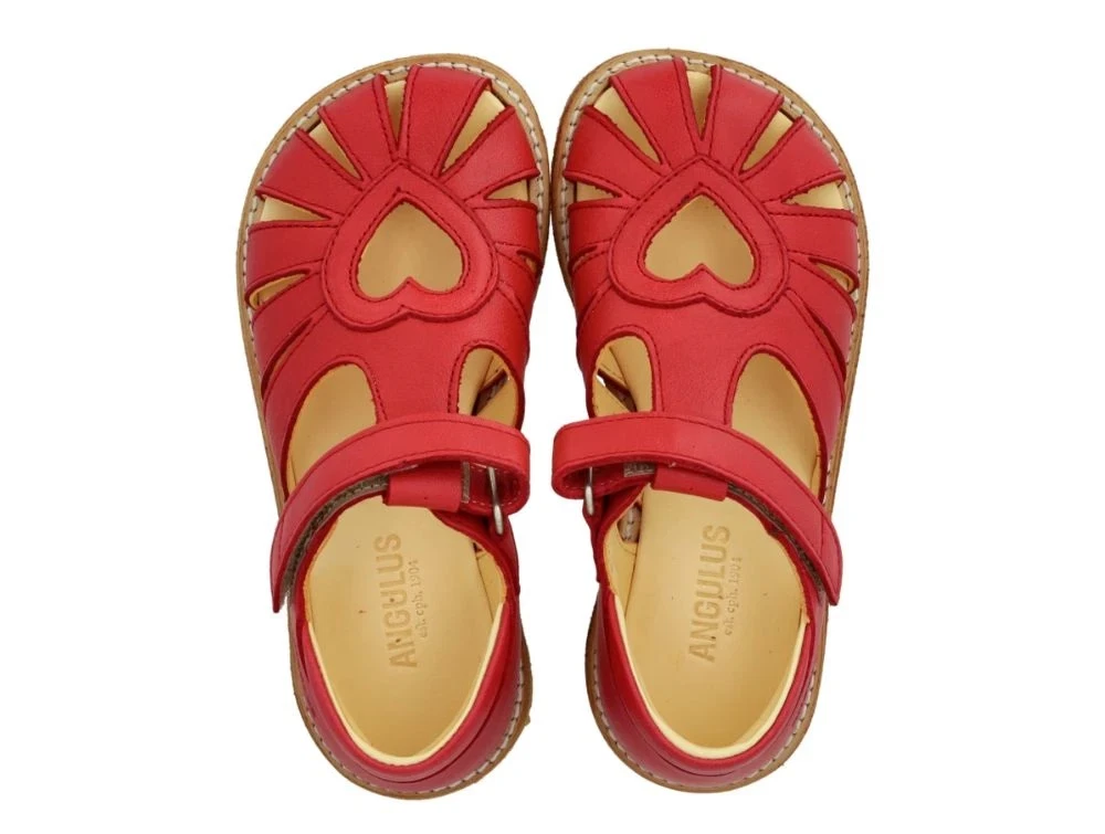 Sandal fra Angulus med hjerte-udskæring i flot rød farve.