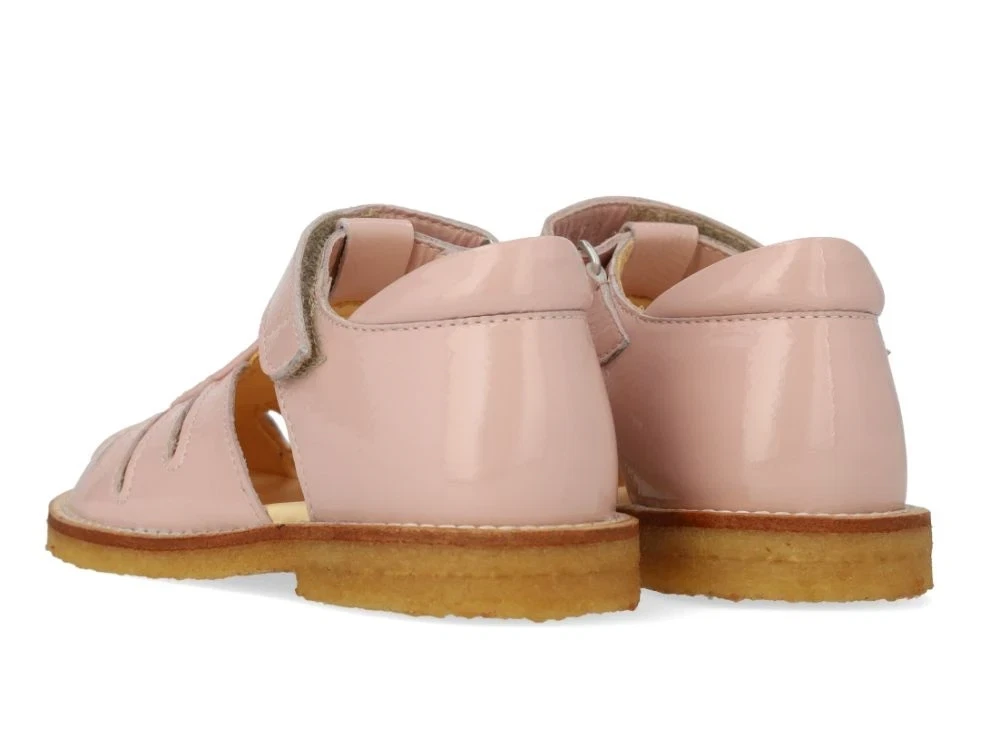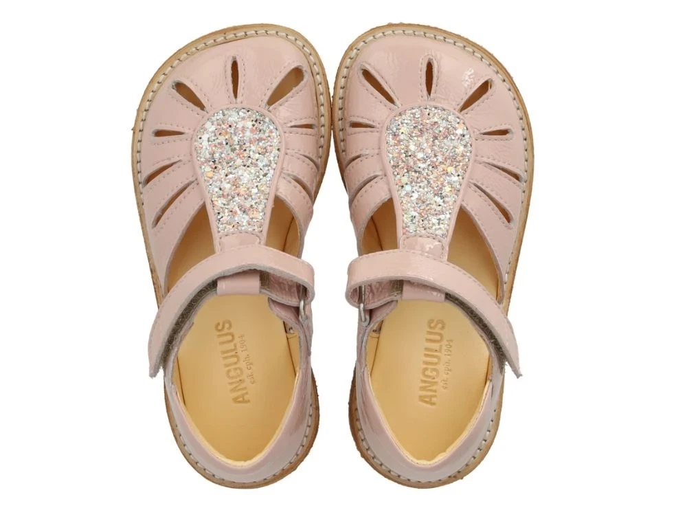 Angulus sandal i en flot rosa farve (rosebud) med dråbeformet glimmer og en fin lakfinish.