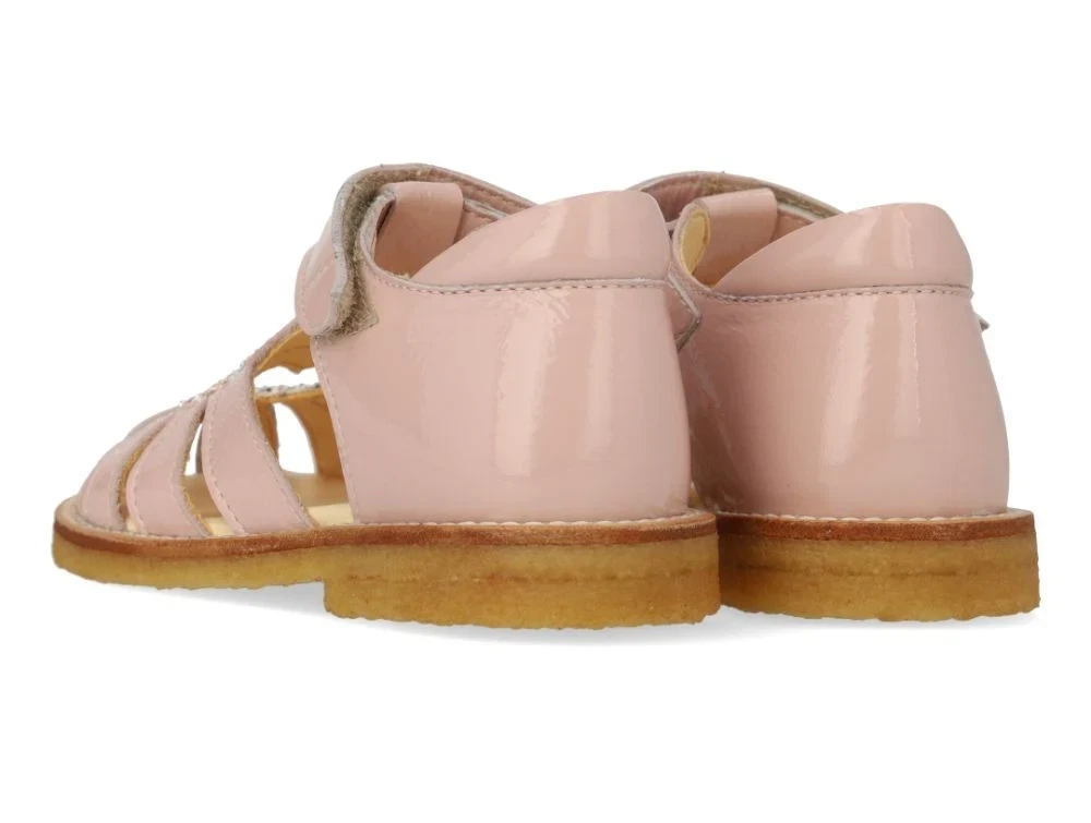 Brug gerne i starten en tynd strømpe i sandaler med lak, da materialet kan føles lidt stivere mod den sarte barnefod.
