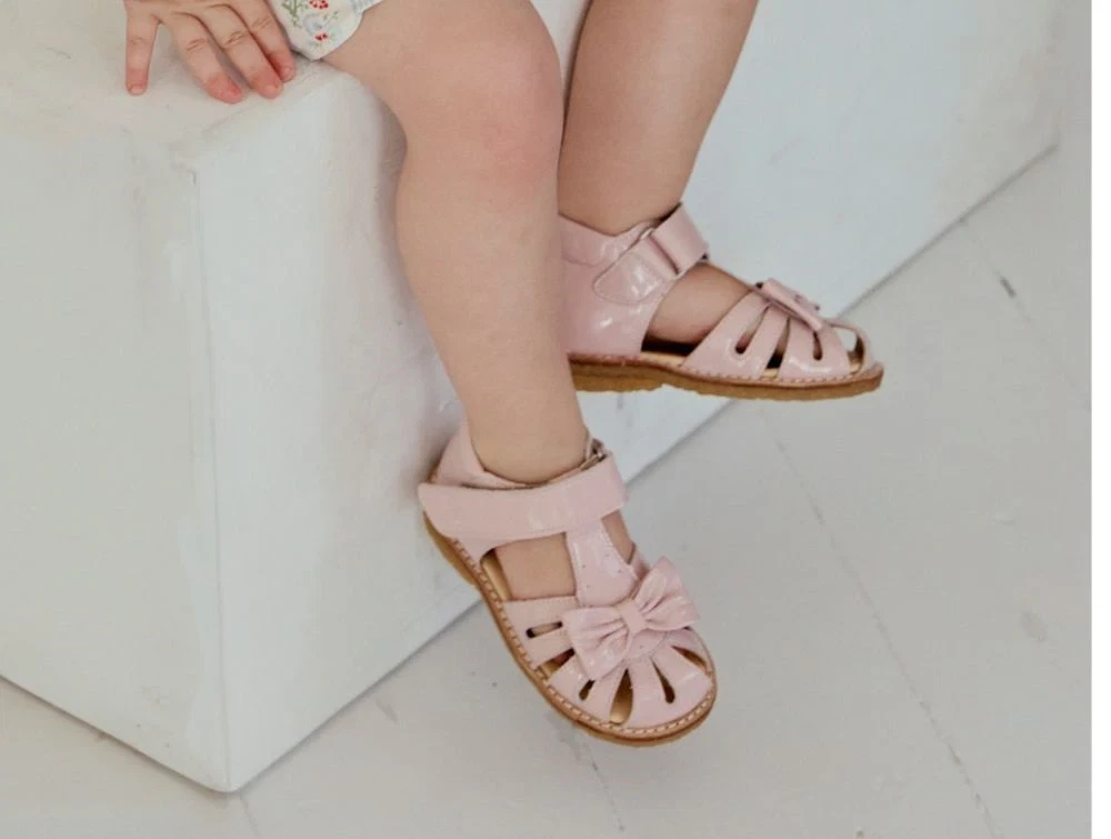 Mere information om Angulus sandal rosebud med lak og sløjfe