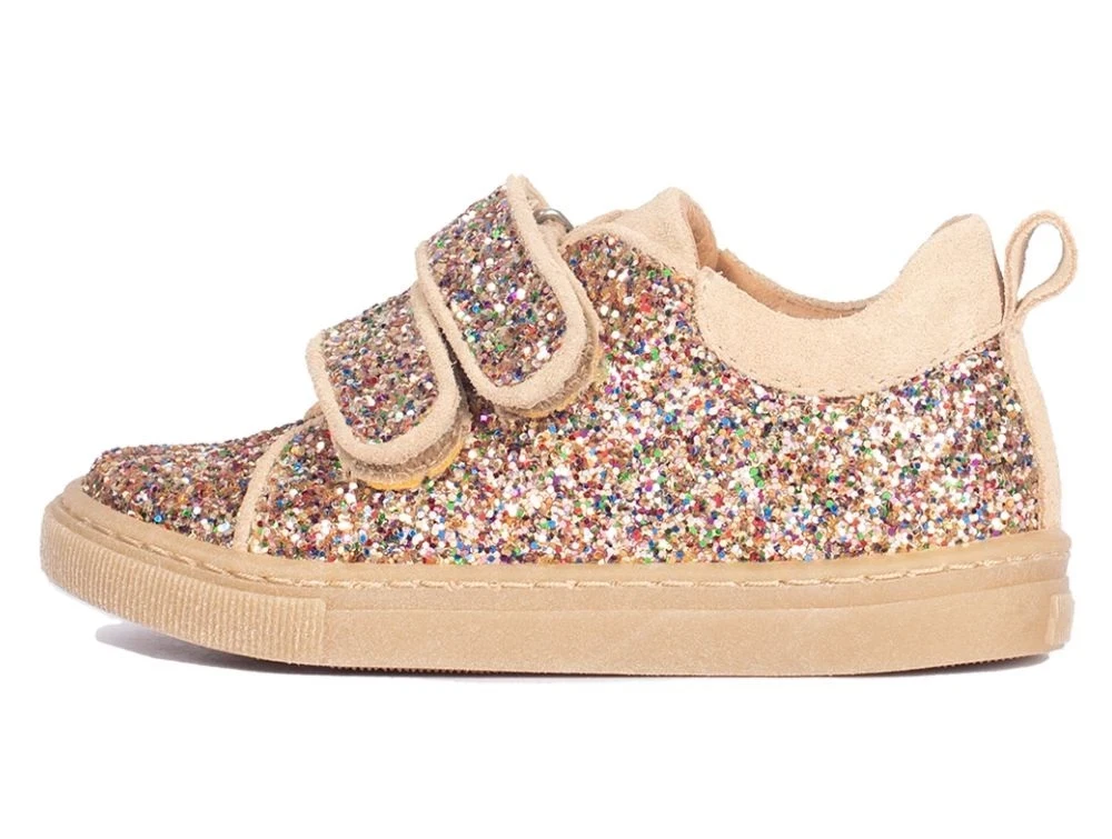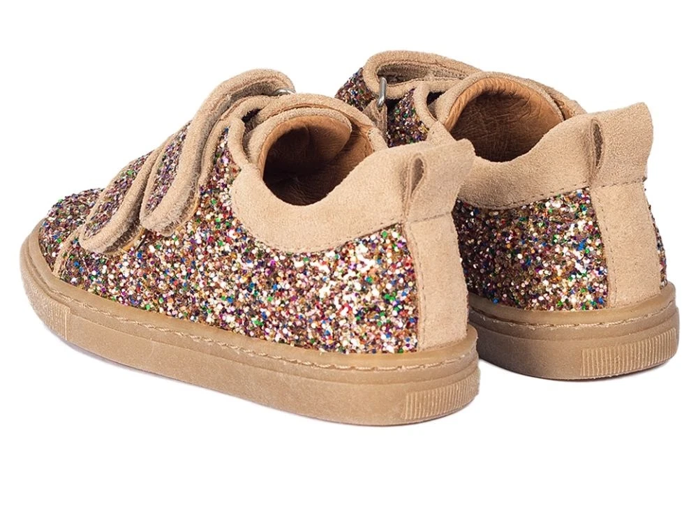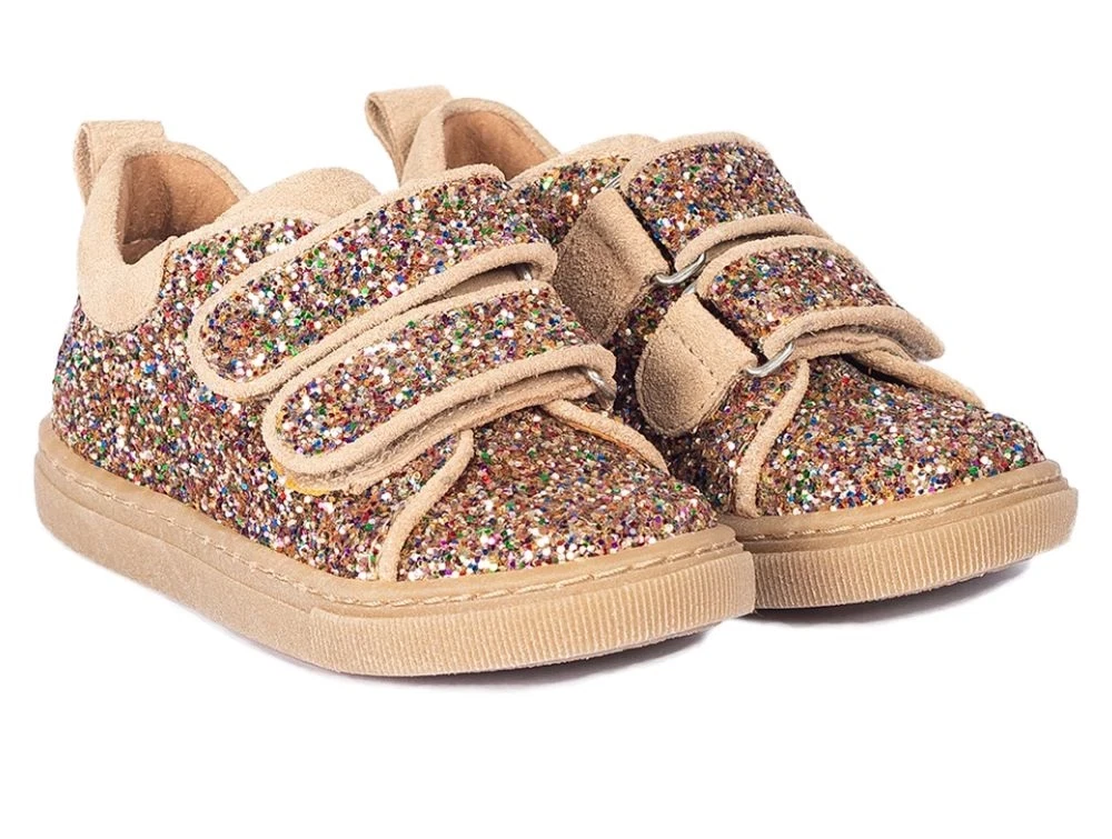 Sko i farven sand med multifarvet glimmer fra Angulus.