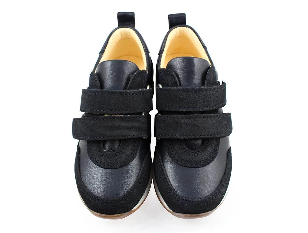 Navyfarvede sneakers i en blanding af ruskind og læder fra Angulus. Lukkes med dobbelt velcroremme.