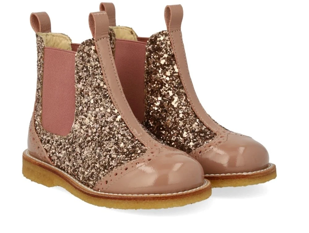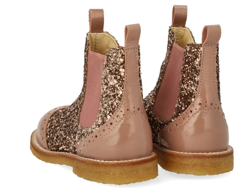 Angulus støvletter med lak og glitter i rosabrun nuance (clay).
