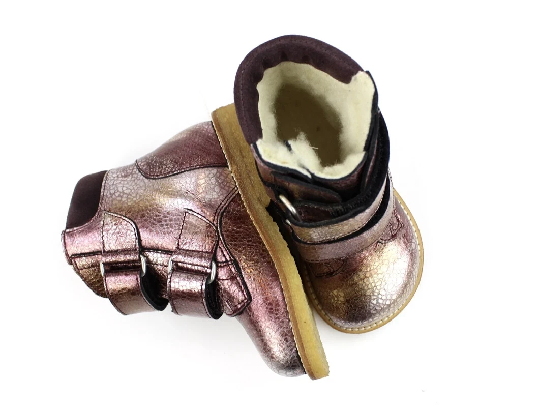 Lædervinterstøvler i metallicfarven sunset/aubergine fra Angulus.