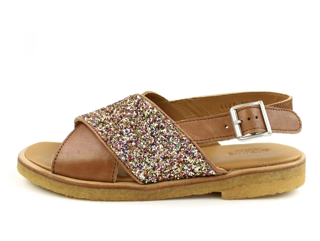 Angulus tan multi glitter sandal med spændeAngulus tan multi glitter sandal med spænde
