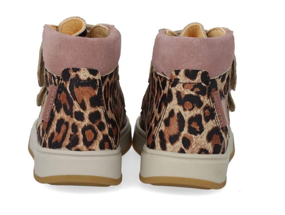 Angulus high-top TEX-sneaker beige leo med hjerteAngulus TEX-sneakers med leopardprint og gummisålVandtæt TEX-sneaker med hjerte fra AngulusBagpå sneakers med hjerte og leopardprint