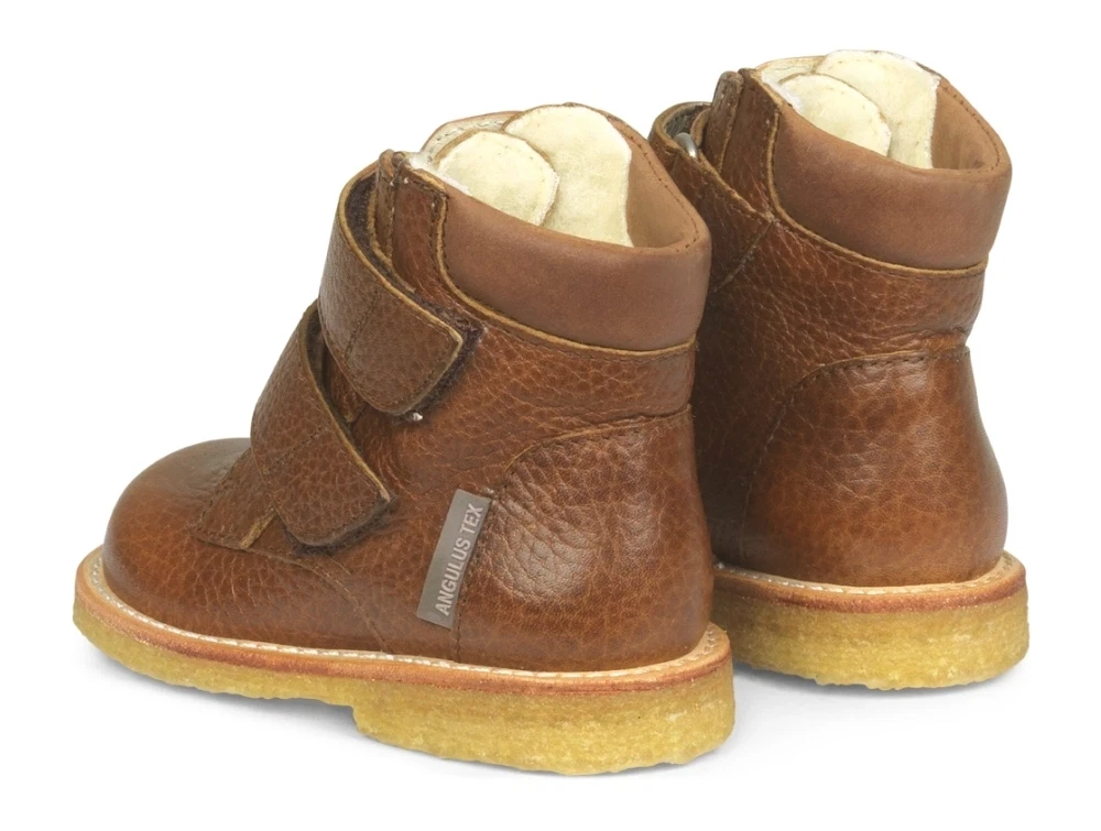 Angulus TEX-støvle i cognac med uldfoer og velcrolukning