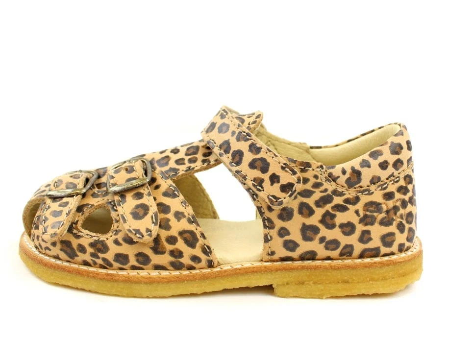 Sandaler med leopard-print fra Arauto RAP, som kan tilpasses rigtig fint til fødderne ved hjælp af spænderne over vristen/tæerne.