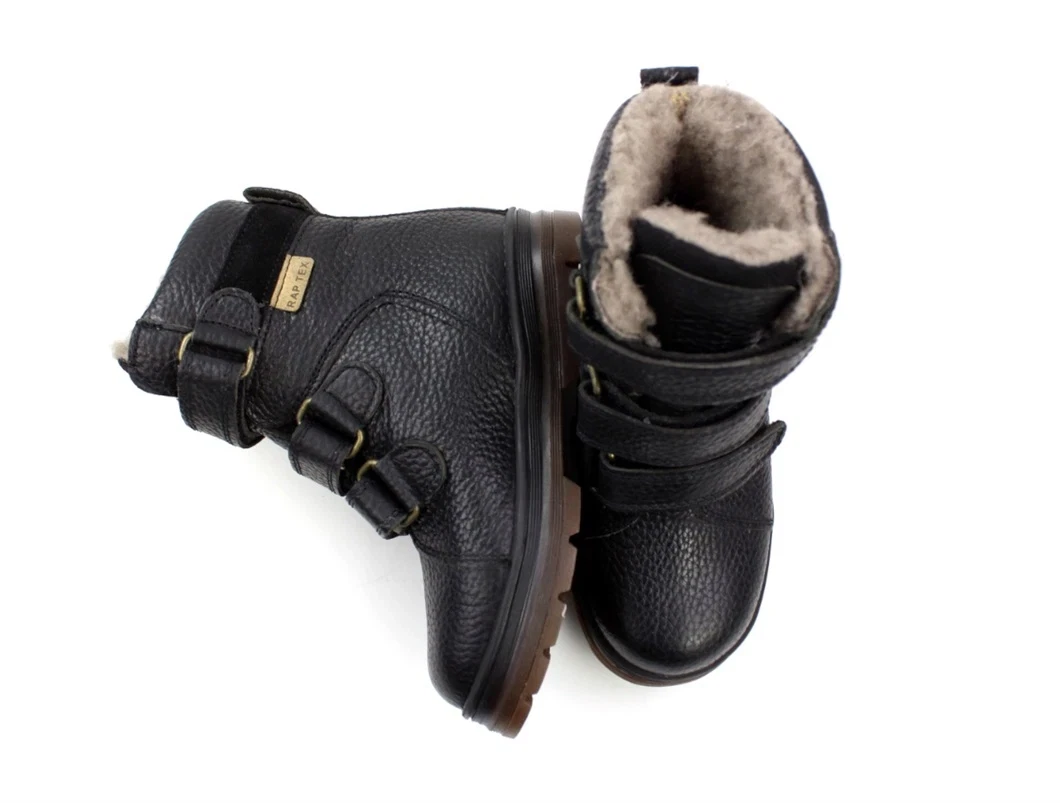 Sort lædervinterstøvle fra Arauto RAP med ægte uldfoer og TEX-membran.