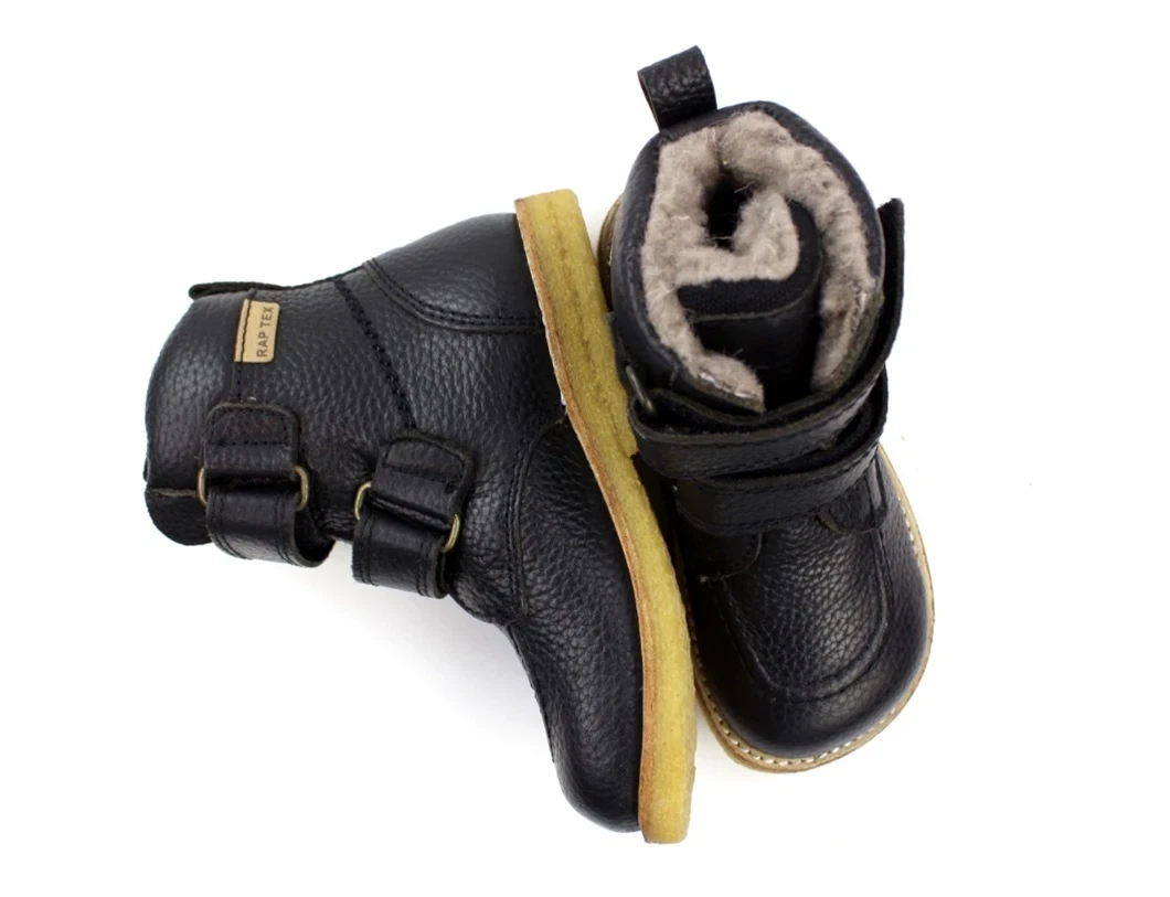 Sort lædervinterstøvle fra Arauto RAP med ægte uldfoer, rågummisåler og TEX-membran.