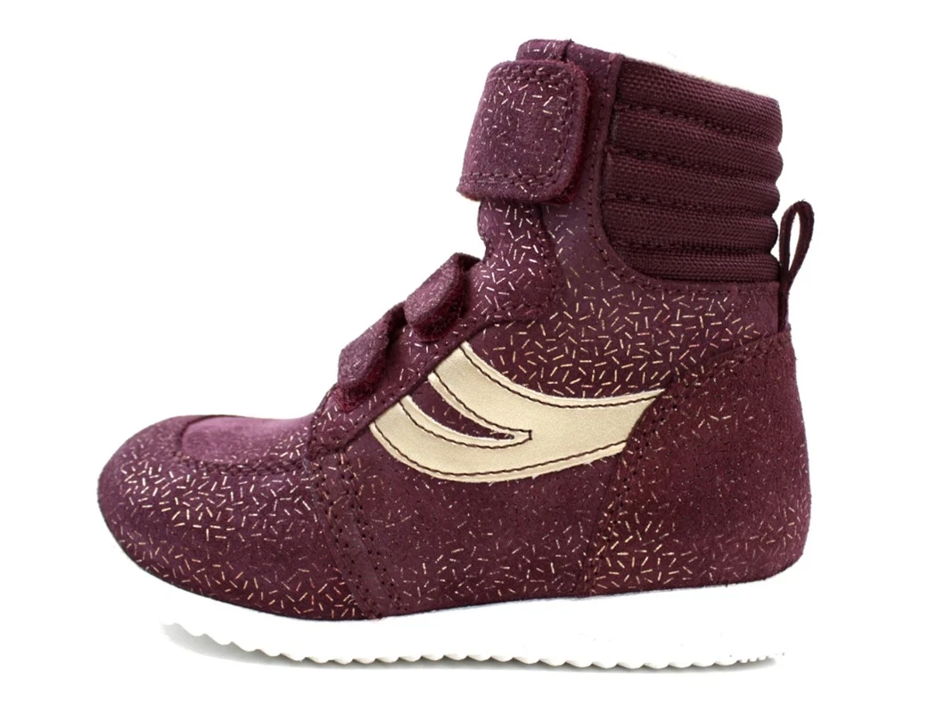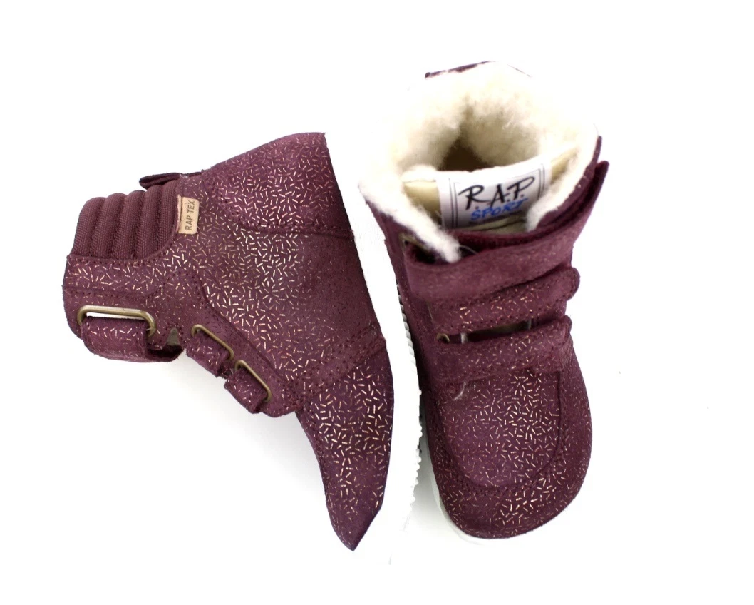 Bordo vinterstøvle med glimmerstreger fra Arauto RAP med ægte uldfoer, hvid gummisål og TEX-membran.