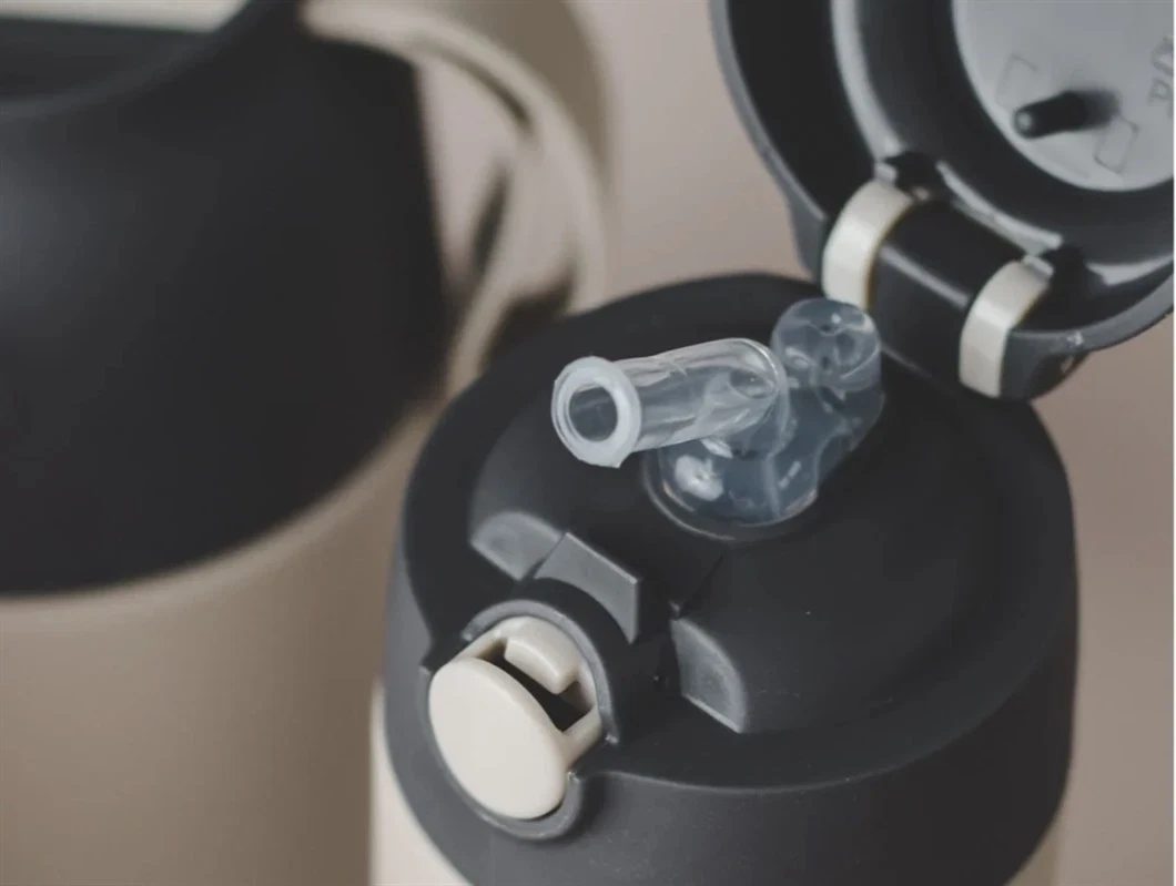 Det børnevenlige design gør det let for de små at klare sig selv. Flasken har et unikt låg, der åbnes med et let tryk, og frem kommer det bløde sugerør. Derudover er der et praktisk håndtag, der gør det nemt for børnene at bære flasken på egen hånd.