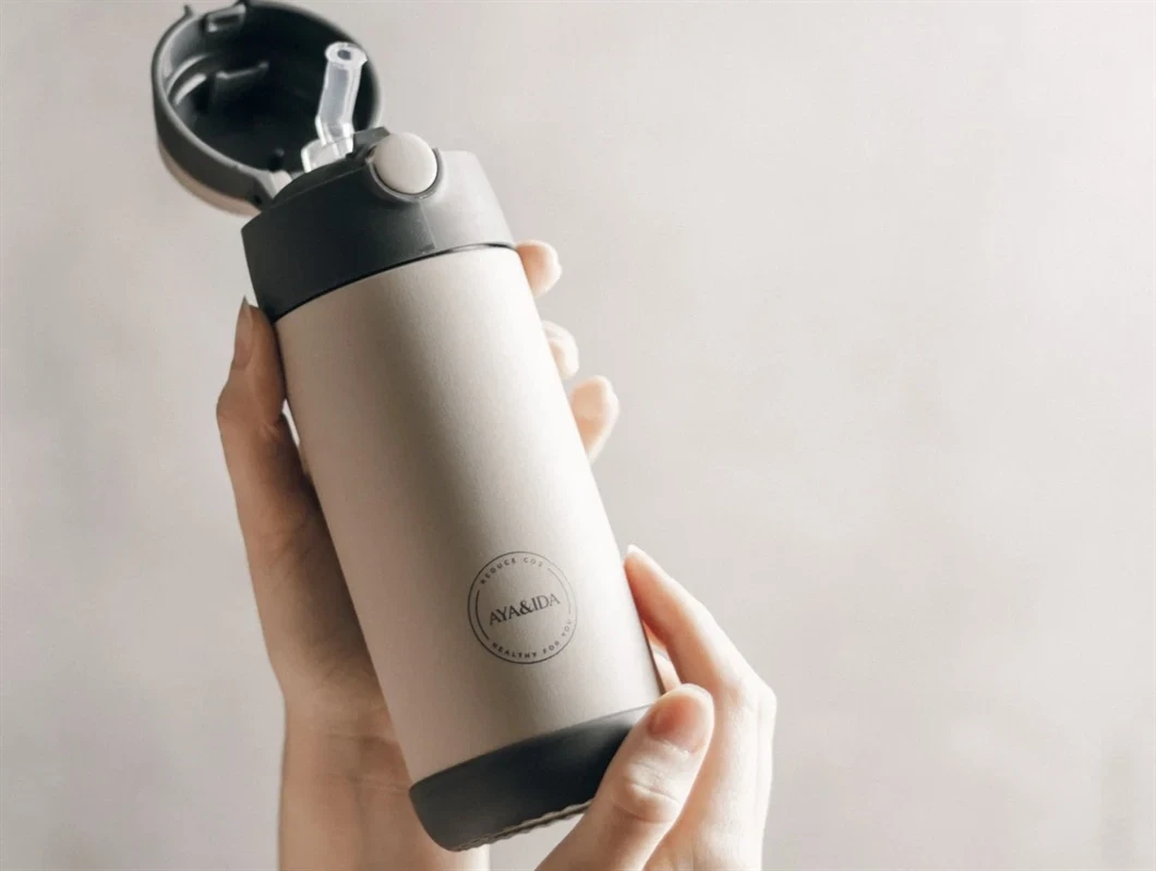 Kids Straw Bottle er ikke kun funktionel, men den er også et stilrent accessory. Den er powder-coatet i den populære Cream Beige farve med elegante grå detaljer.