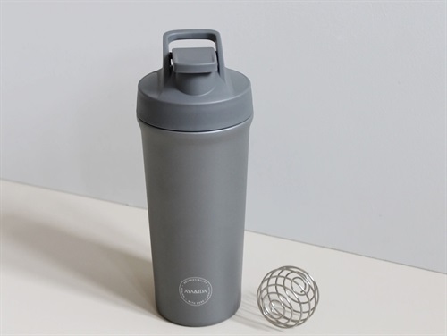 Super lækker shaker drikkeflaske med stålbold i farven dark grey fra AYA&IDA.