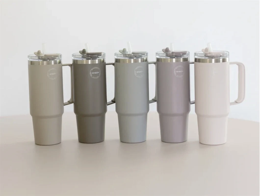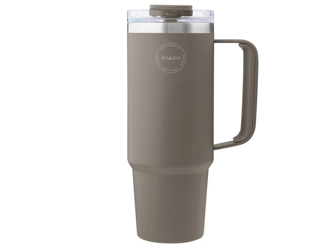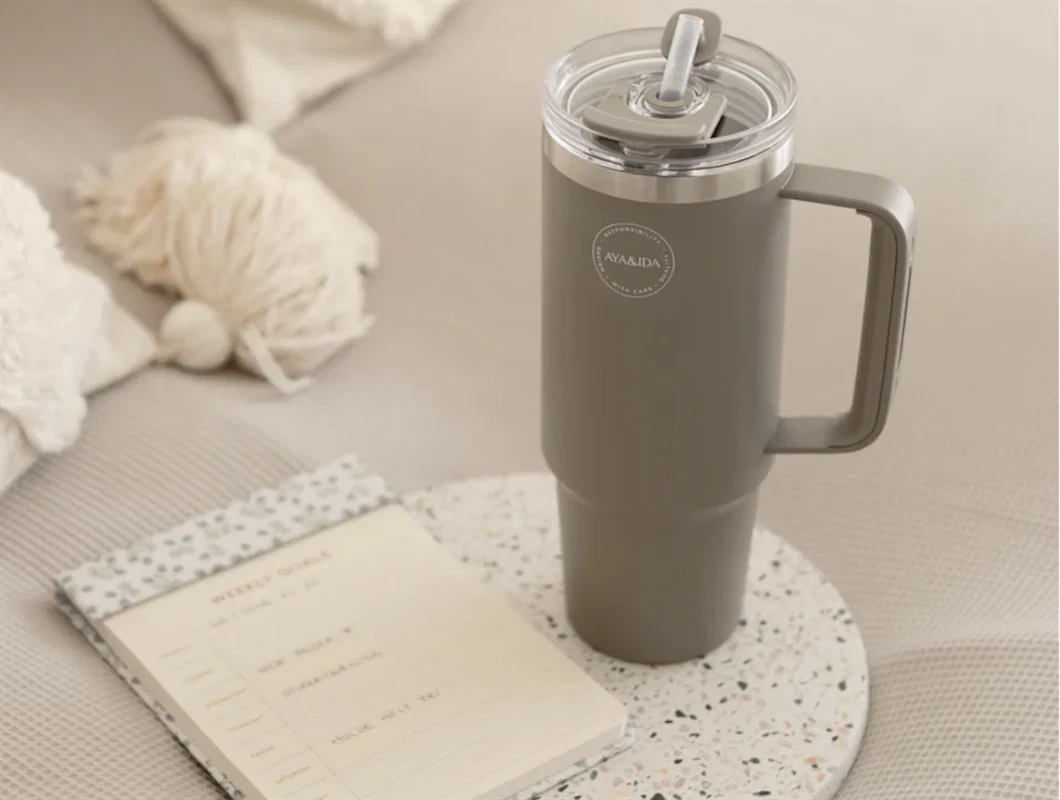 Super lækker termokop to-go med sugerør i farven driftwood fra AYA&IDA.