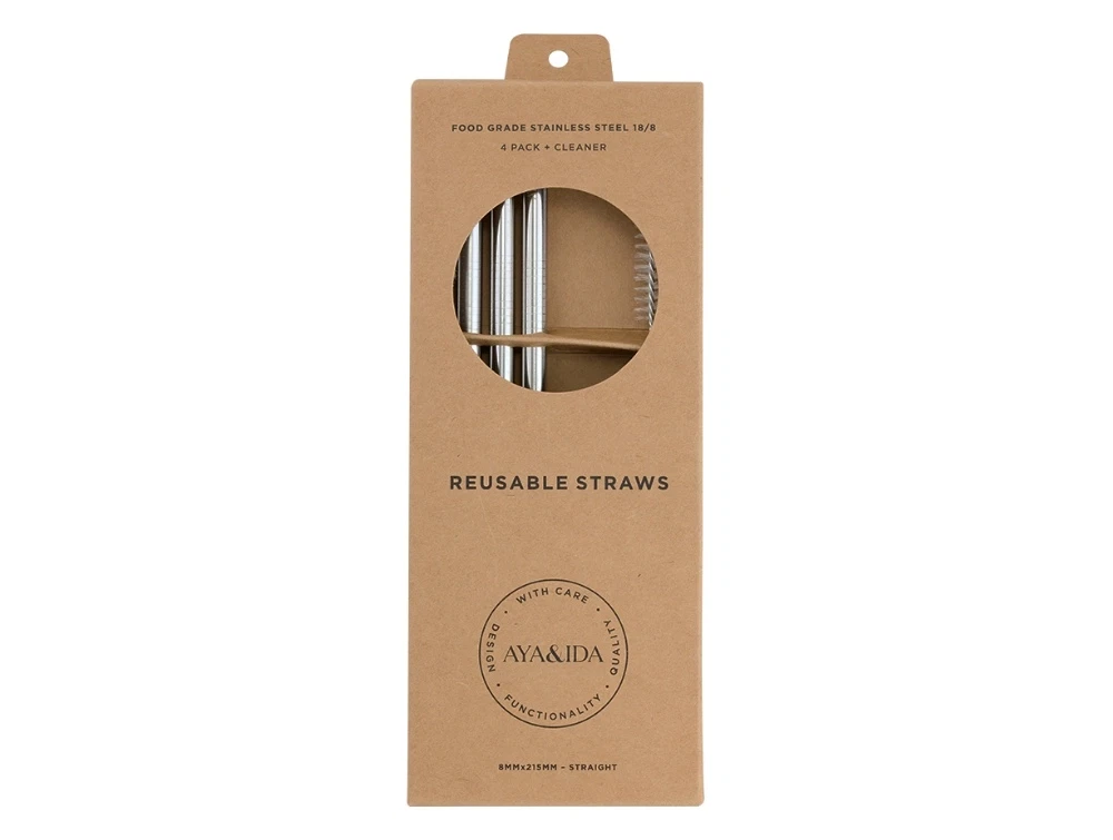 AYA&IDA genanvendelige sugerør lige rustfri stål 4-pak med rensebørste