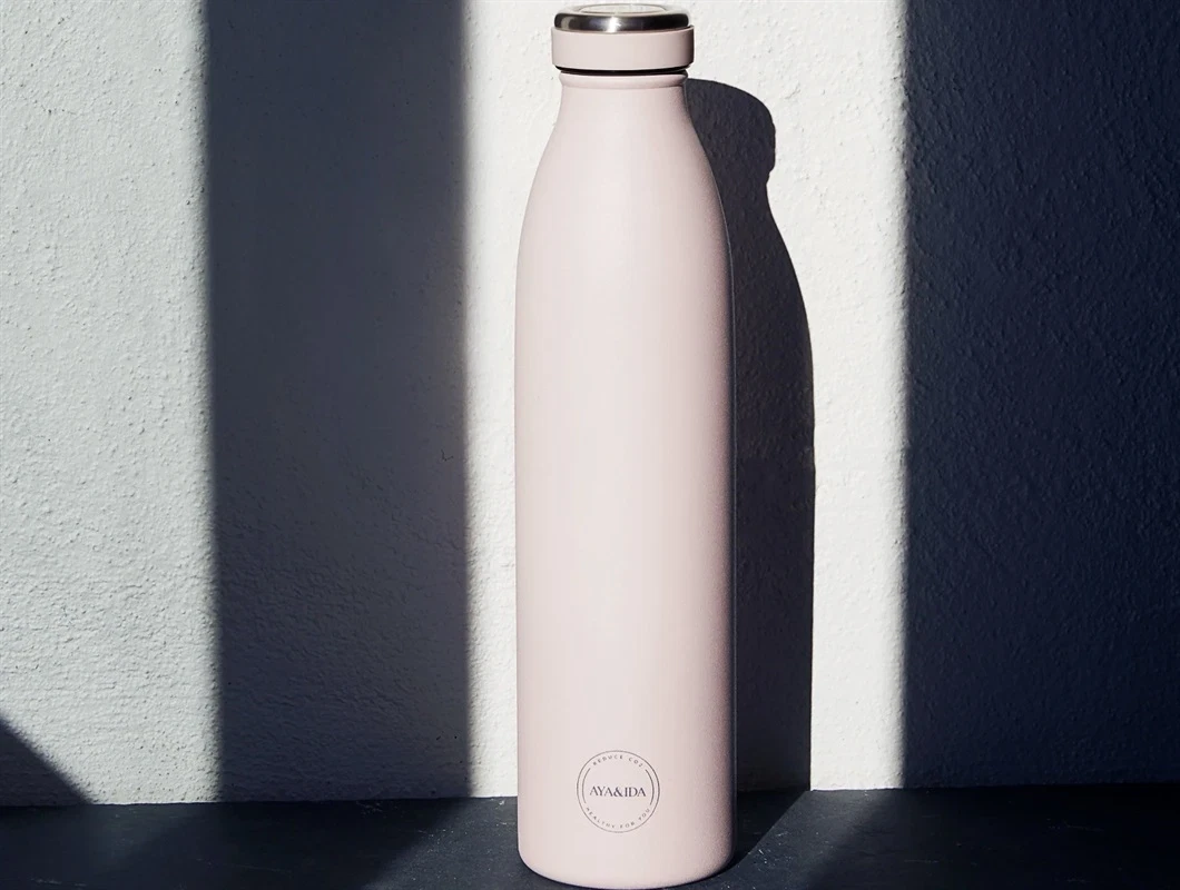 Super lækker 750ml vandflaske i rustfrit stål i farven soft rose fra AYA&IDA.