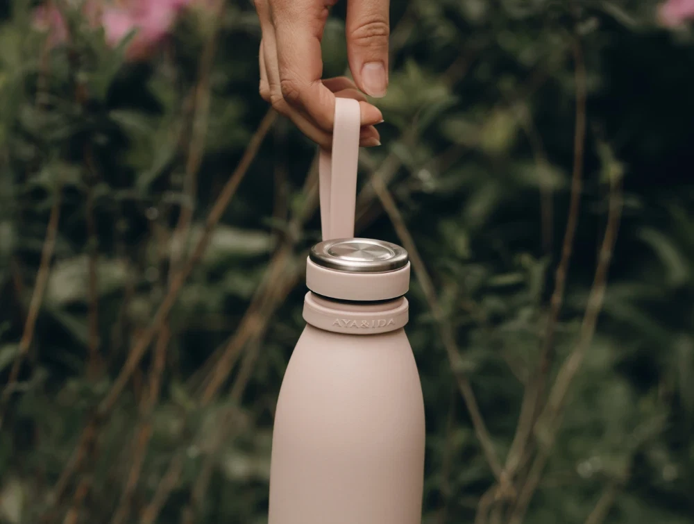 AYA&IDA soft rose flaskestrop og sportslåg til drikkeflaske