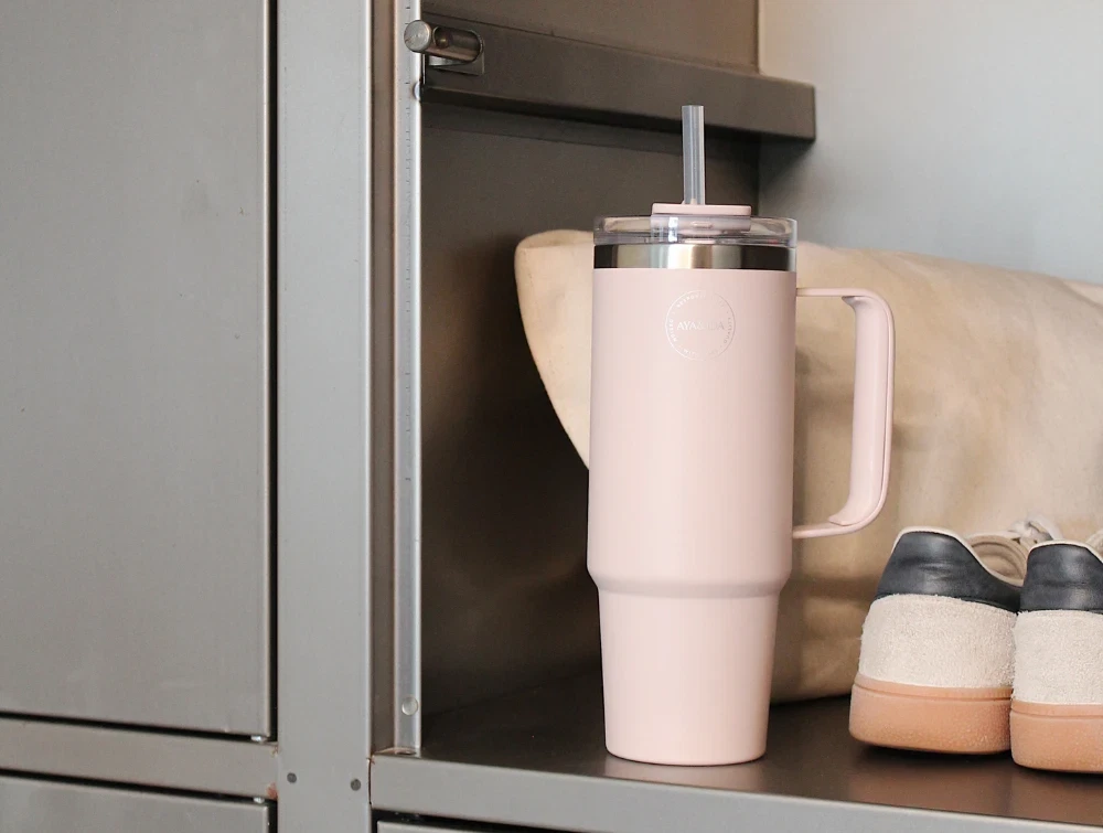 Super lækker termokop to-go med sugerør i farven soft rose fra AYA&IDA.